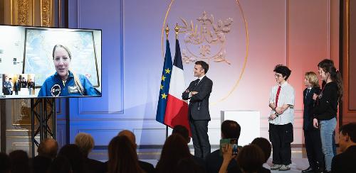 Le directeur général de l\'ESA, Josef Aschbacher, s\'est joint au président français Emmanuel Macron à l\'Élysée pour un événement célébrant le premier vol spatial de l\'astronaute de l\'ESA Sophie Adenot.