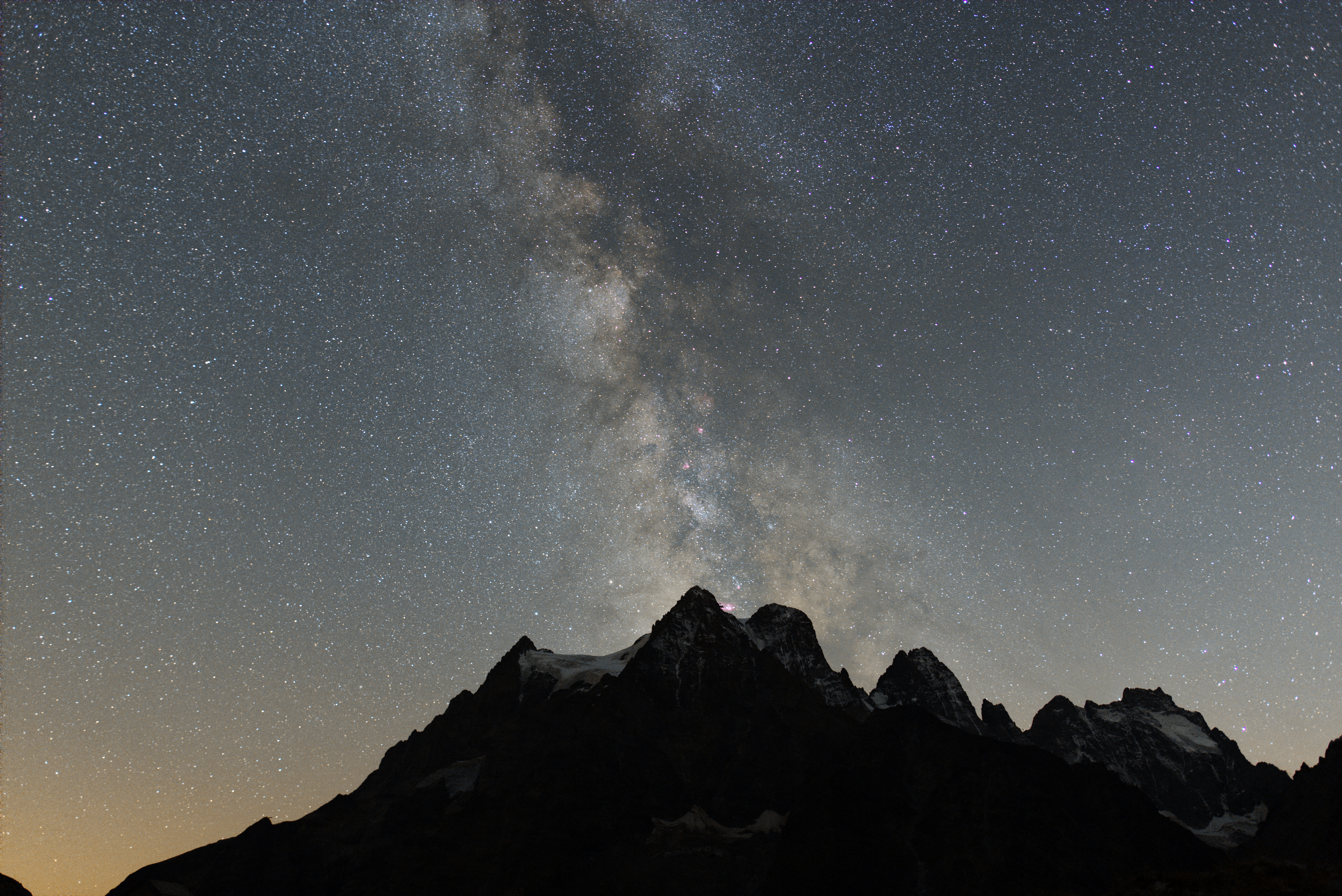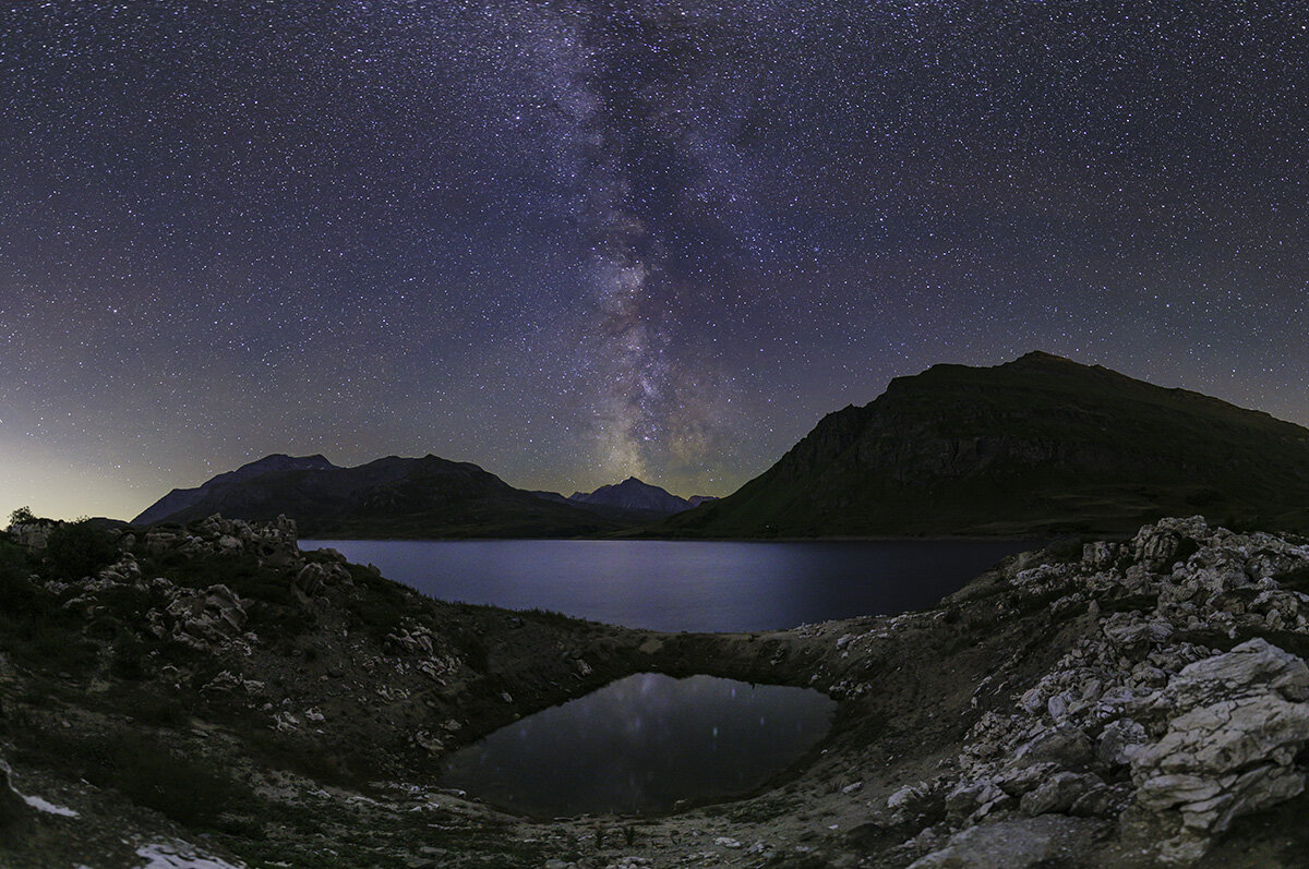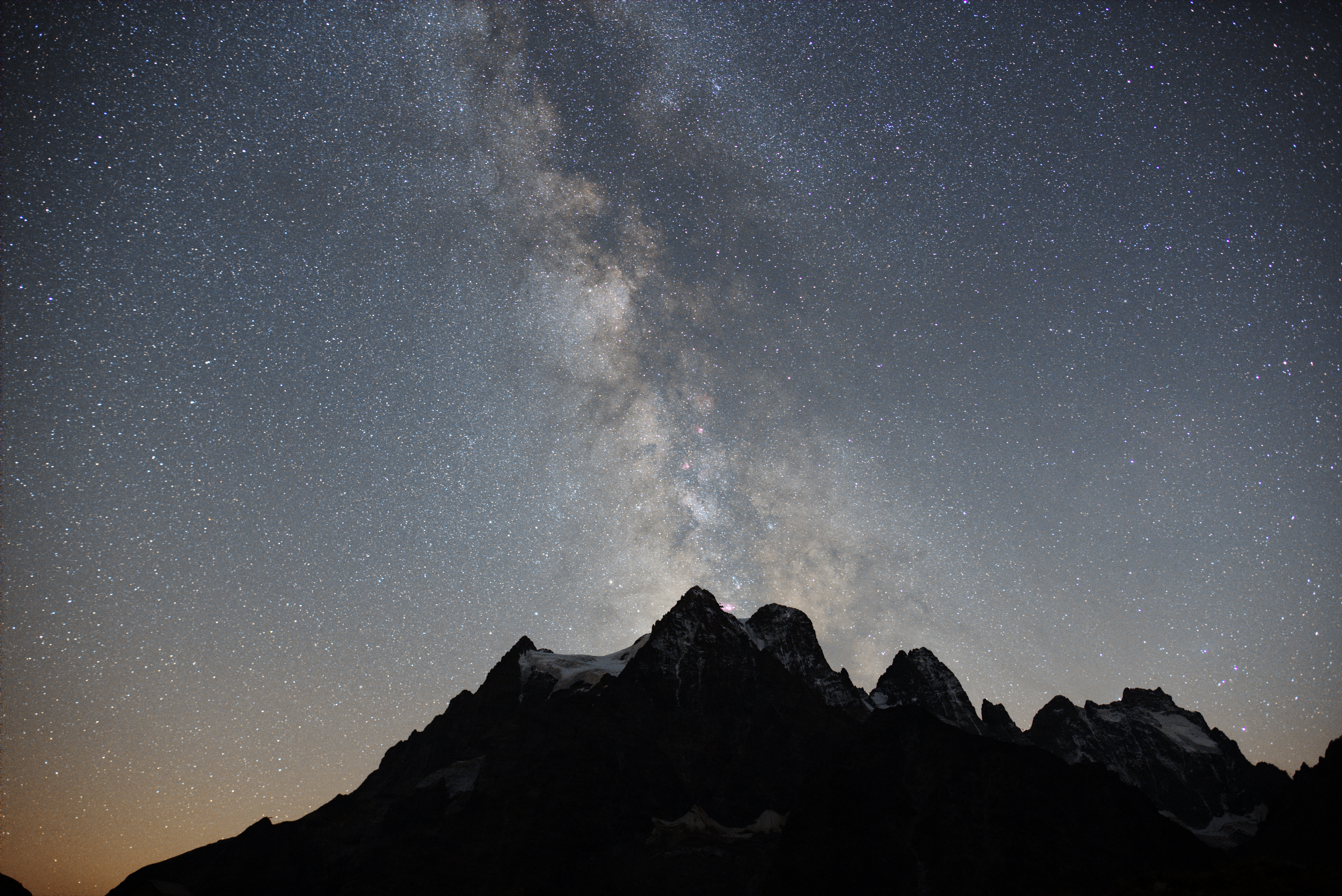 Le col des champs ce samedi soir vers minuit. J'avais tenté la semaine dernière mais les nuages avaient un peu été de la partie. Ce samedi avec les copains et mon fiston nous sommes allés crapahuter du côté du Pelat en partant de la Cayole, puis ne trouvant pas de lieu sympa pour le bivouac, nous sommes allés au col des champs. Cette fois le ciel était dégagé et j'avais pris mon matos photo... Pour les fans des EXIFS: panorama de 10 images en verticales au 35mm. EosRP 6400 iso f3.5 2 min (le ciel est suivi à l'aide d'une monture équatoriale motorisée Star adventurer Mini)