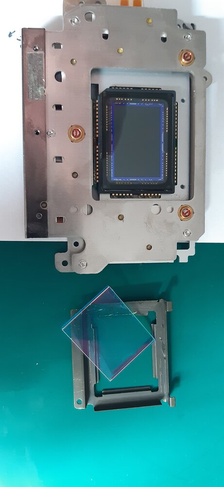 Bonjour les pentaxistes bricoleurs ! Il traînait depuis très longtemps, environ 4 ans, dans son carton, en haut d'une étagère. Et comme le canon 60D d'occas que j'avais défiltré il y a 3 ans, a rendu l'âme, je me suis dis : "Aller, passons à la difficulté supérieure" 😆. Alors oui c'est 2 génération plus ancien que le 60D, mais je suis pentaxiste donc le choix est logique. Et si par bonheur, je me rends compte que ça marche bien, j'irai peut-être à la pêche aux occasions plus récentes 😃 Je l'ai donc ressorti et cherché les tutos miraculeux sur la toile. Résultat : bah pas grand chose. Le premier potable est celui-ci : https://kolarivision.com/diy-infrared-conversion/pentax-k10d/. Vraiment dédié au démontage en vue d'un défiltrage (pour photo infrarouge), il est très intéressant. Mais c'est un vrai gruyère. Il manque beaucoup d'étapes, et comme de par hasard : les plus compliquées.... Sinon, il y a celui-là qui semble venu des docs officiels : https://www.manualslib.com/manual/1241681/Pentax-K10d-76830.html?page=9. Un peu plus complet avec des petites astuces parfois utiles mais ce n'est pas orienté "Défiltrage" mais plutôt "Maintenance". Bref, me voilà donc parti pour le démontage. Pour qui a déjà défiltré un boitier Canon, c'est relativement identique..... sauf que là il faut jouer du fer à souder - enfin du fer à dessouder. Et ça laisse augurer quelques joyeuses soirées quand il faudra ressouder tout ça. Car oui, pour le moment, j'en suis là : tout est démonté, le filtre retiré. Il me faut maintenant choisir quoi mettre à la place pour pouvoir utiliser mes objectifs habituels, et avoir accès à la map à l'infini, évidement 😉 J'aurais donc quelques questions : quel filtre me conseilleriez-vous ? Sachant qu'il n'y a pas de défiltrage partiel. Là on enlève tout ! Le filtre semble constitué de 2 lames collées - épaisseur 1.20mm (voir image). Le but est de faire de la photo astro naturellement mais je ne cracherais pas sur de l'infra-rouge - histoire d'essayer. Je vois que eosforastro (Richard Galli) utilise soit des verres Schott, soit des Astronomik. Quel est le meilleur compromis ? Et ou s'approvisionner ? si refiltrage Astrodon inside, est-ce que la taille est compatible ? On est sur le l'APS-C classique normalement. Même question : ou s'approvisionner ? pour de la photo IR il faudra un (ou des) filtre adapté (les passe-hauts genre https://hoyafilter.com/product/r72_infrared/) si je pars sur un défiltrage total (avec filtre clair), est-ce que les filtres photos classiques UV-IR cut peuvent suffire pour éviter les étoiles baveuses (par ex. les UV-IR cut Hoya - https://www.missnumerique.com/hoya-filtre-uv-ir-cut-67-mm-p-49013.html) ? Merci d'avance Tony PS : Quelques photos pour montrer l'ampleur des dégâts 😅 -