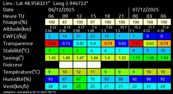 Ces paramètres sont fournis pour la nuit suivante de 12 h TU du jour en cours à 12h TU du jour suivant par pas de 3h.