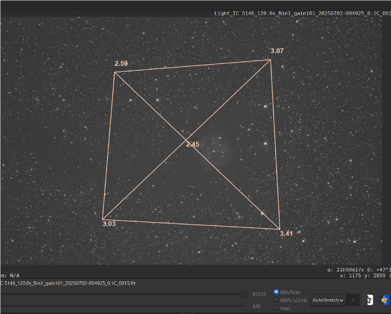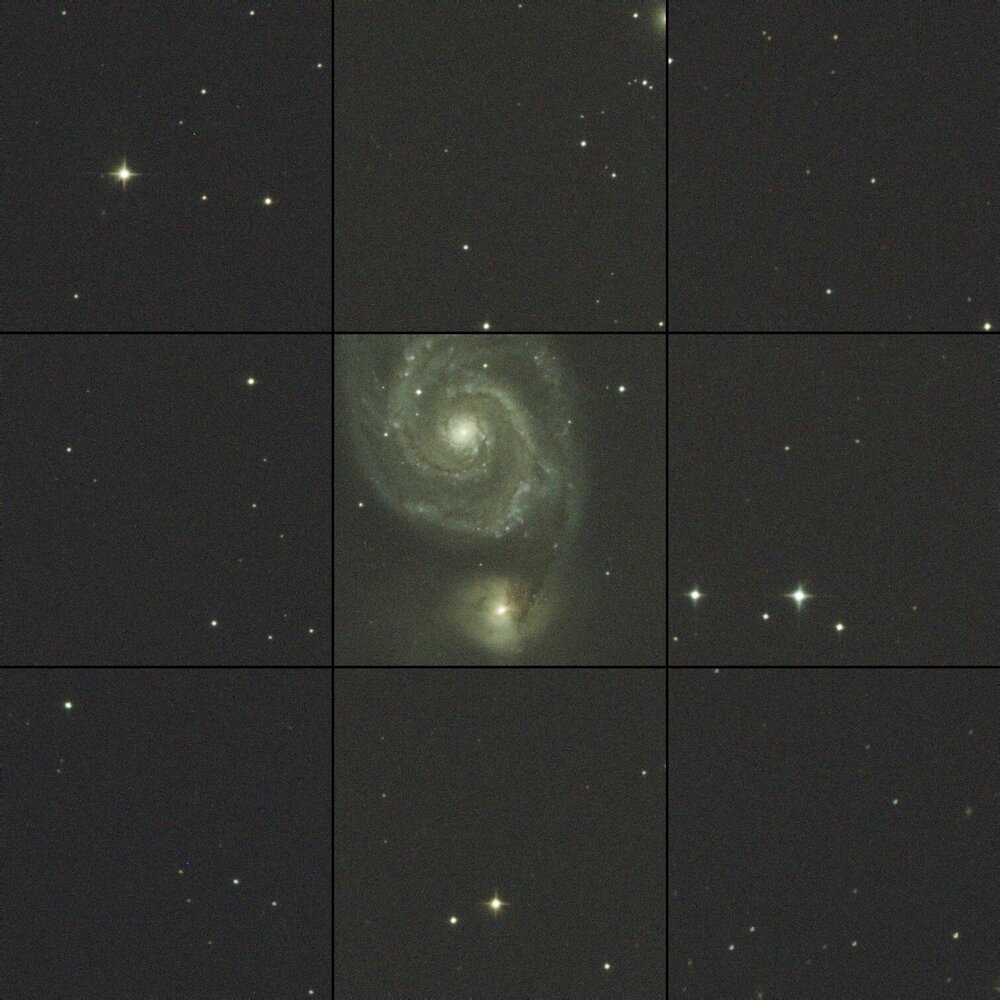 Ca ressemble beaucoup a ce que tu as c'est pourquoi je regarde ici. Pour le tilt (avec siril) j'ai ca sur ce sub, c'est un des pire que j'ai trouivé : Le meme sub (le mauvais) avec abbération inspector: Le haut est bien, les coins du bas sont moins bien. Et voici une autre image quelques nuits plus tot, aucun probleme ! : -