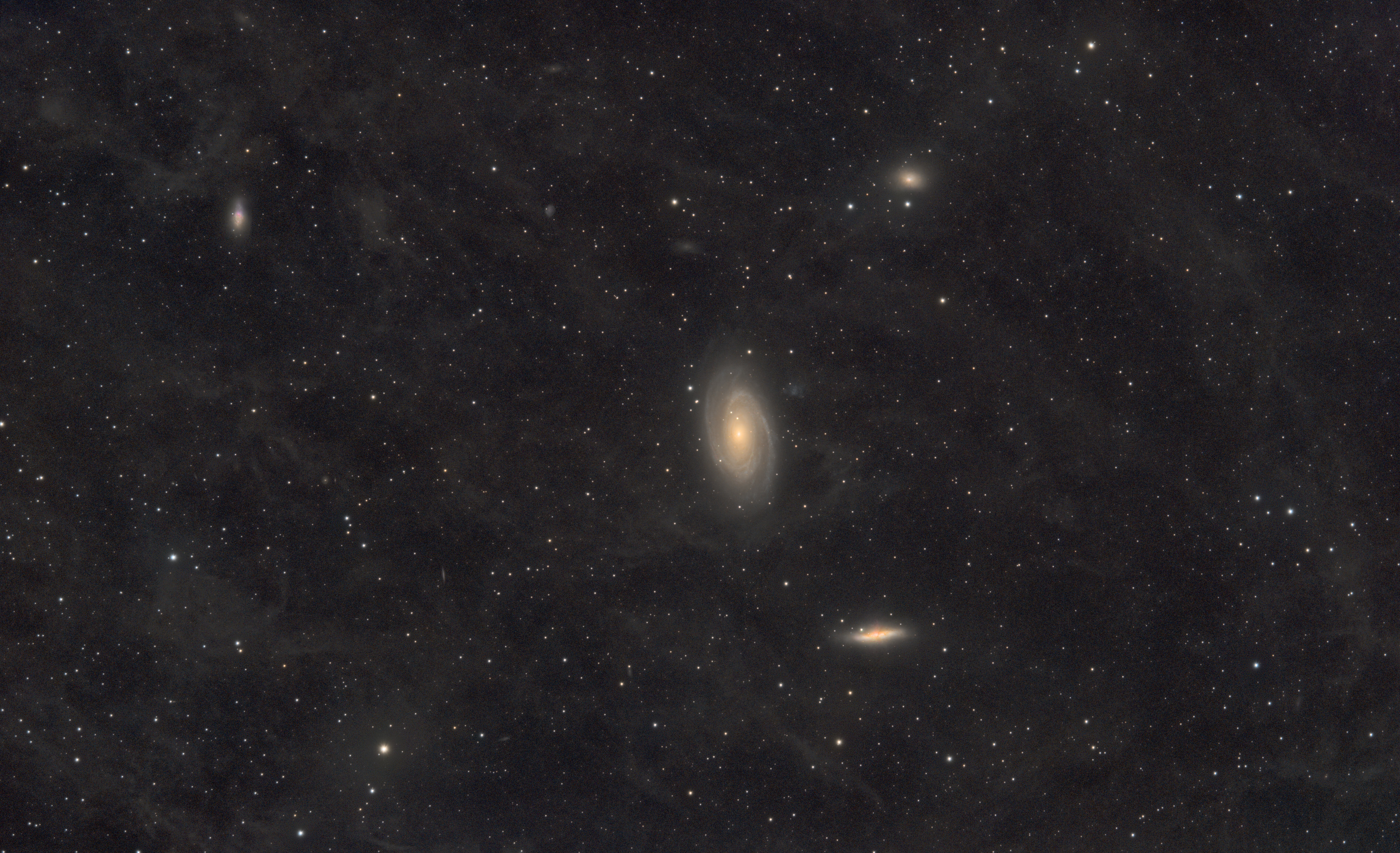 Bonjour à tous !! Après une longue sans image, j'ai pu ressortir le matériel mi-Mars dernier, pour la nouvelle lune en plus. La dernière sortie datait de 2025 (comme beaucoup ici) J'ai choisi d'aller voir le célèbre duo M81 et M82. Des cibles que j'ai pointé à plusieurs reprise, mais jamais avec une caméra refroidie. J'ai pu passer la nuit complète, et sans lune j'ai quasi gardé toute les images, soit 160 poses de 3' Le setup : TS60/360 sur EQM35 Poséidon-C, filtre UvIrcut Autoguidage avec GPCMOS KMA + 40/160. poses de 180'', gain 125, offset 20, capteur à -5°C Traitement avec SIRIL, Graxpert et Gimp Déjà, j'ai plus de couleurs que dans ma toute première version à l'APN, mais surtout, j'ai beaucoup plus d'IFN ! Donc pour une reprise après 3 mois de pose, je suis plutot content du résultat. Comme toujours, les critiques et conseils sont bienvenus !! Bon ciel à tous !! Julien