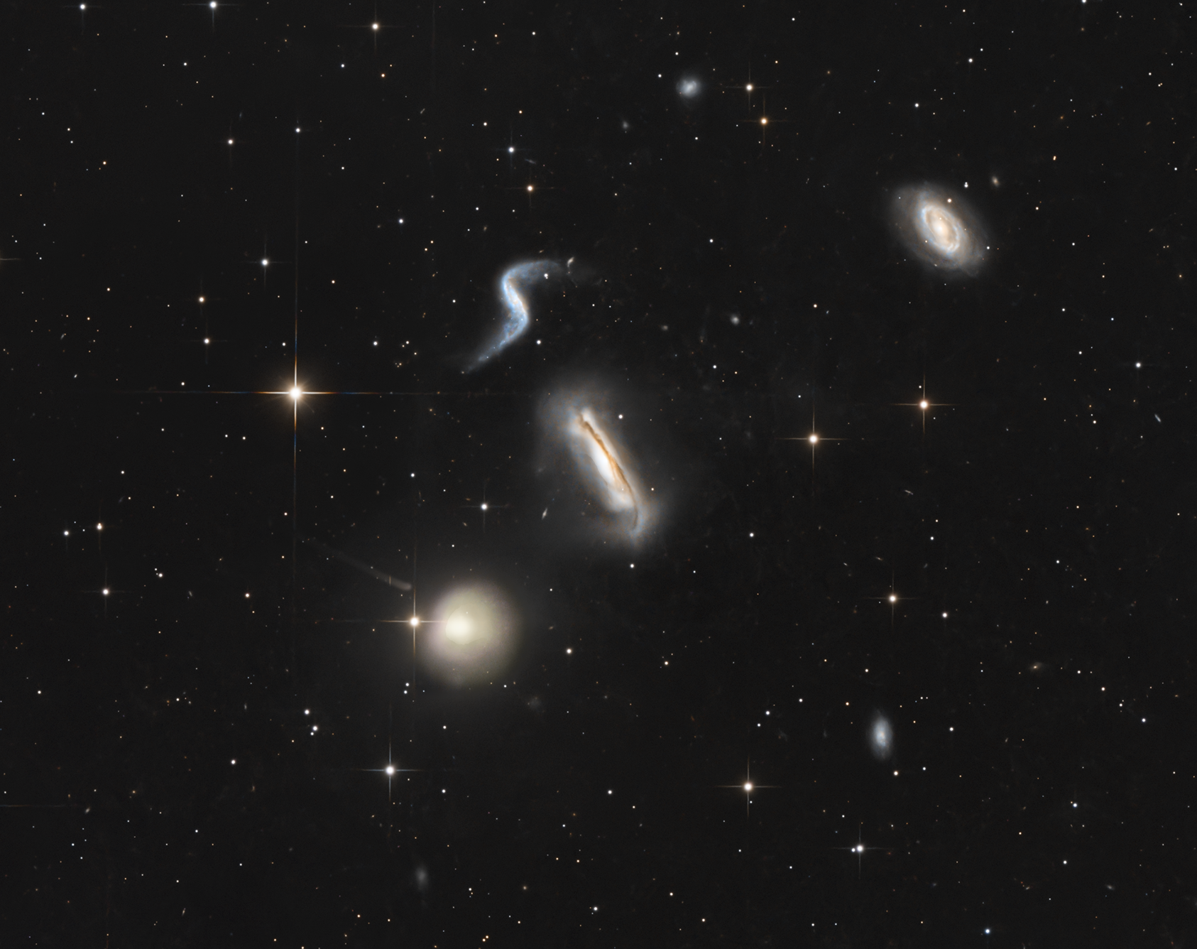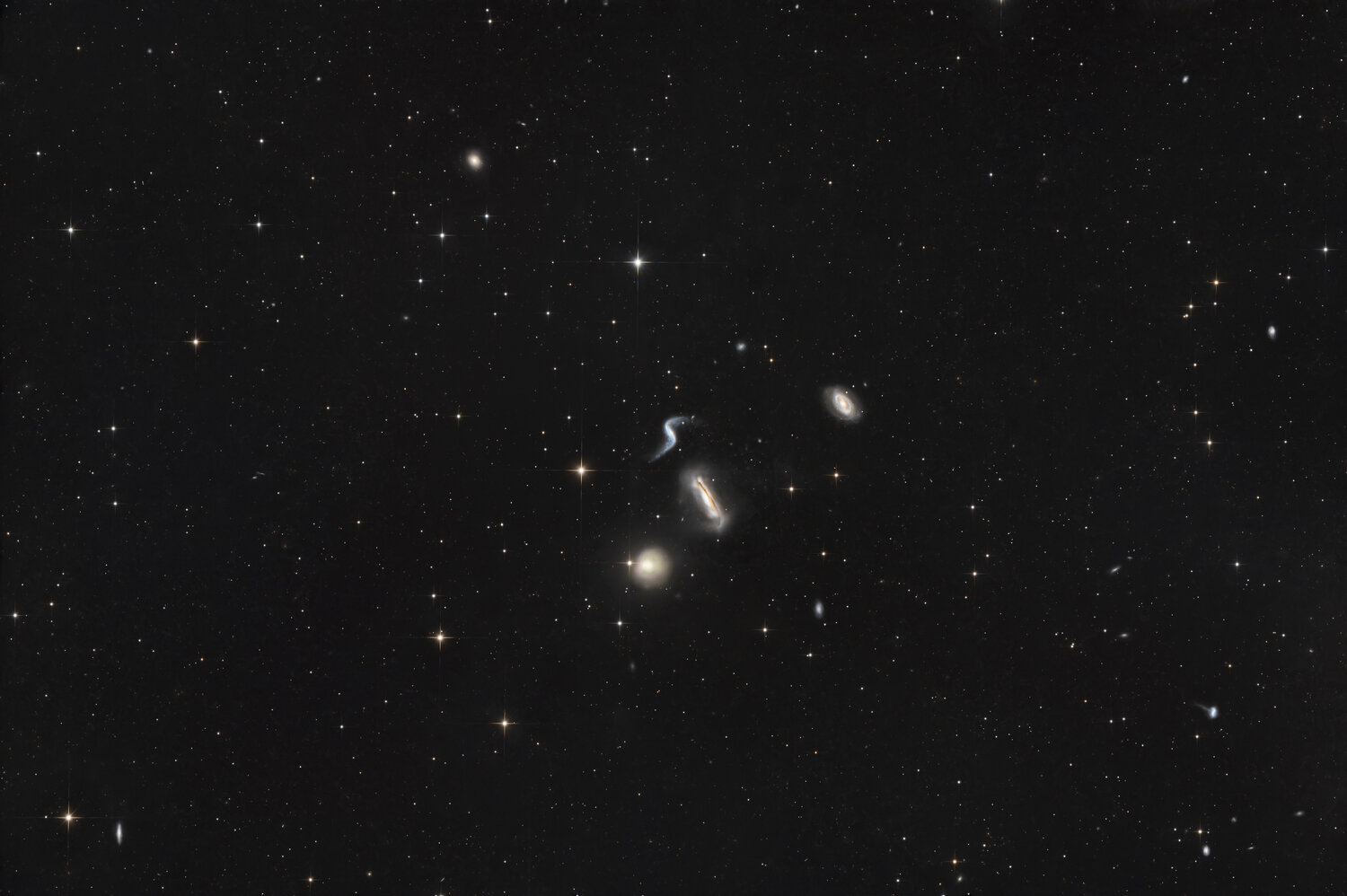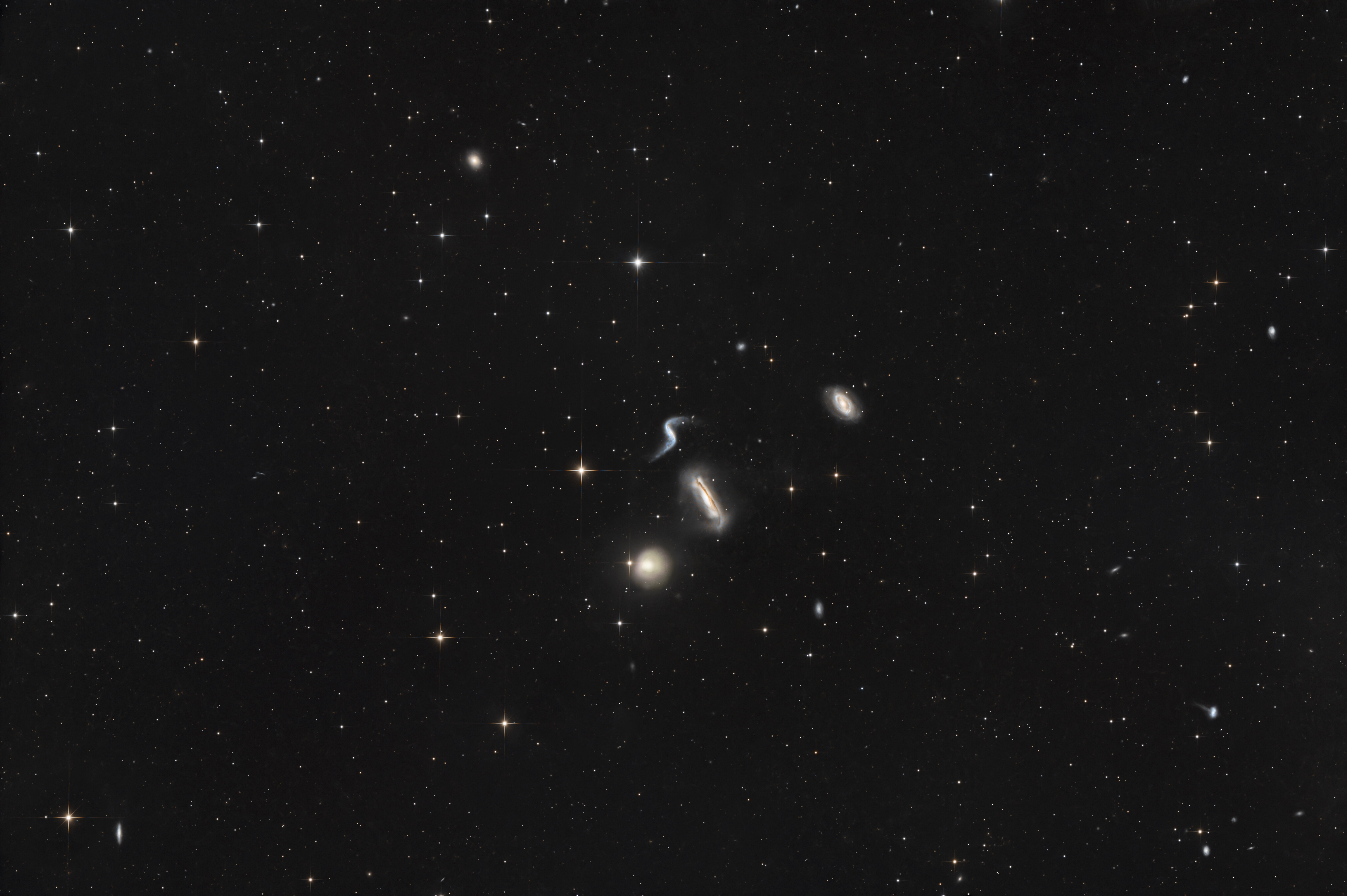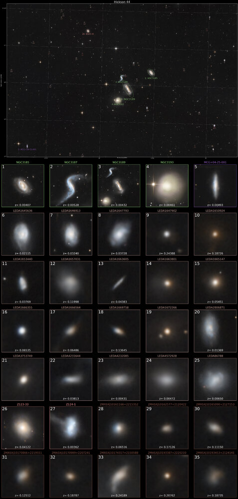 2. Le groupe compact de Hickson 44 (HCG 44) est un groupe de galaxies situé dans la constellation du Lion, à environ 80 millions d'années-lumière de la Terre. Ce groupe fait également partie d'un autre groupe de galaxies répertorié dans l'ouvrage de Halton Arp intitulé « Atlas des galaxies particulières », sous la désignation Arp 316. 55x180s HFD et guidage assez moyens