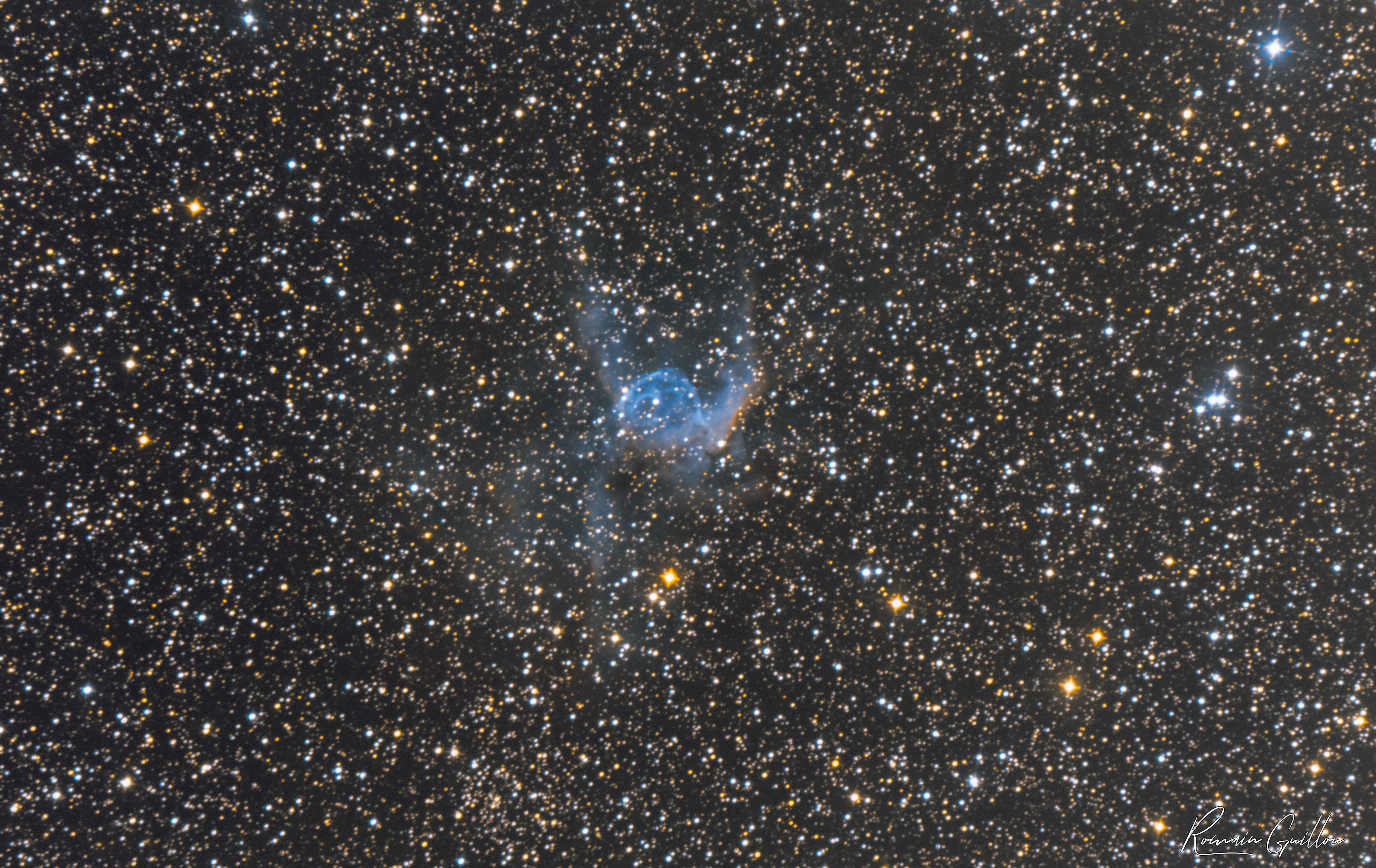 NGC 2359 , Le Casque de Thor Nouvelle image de NGC 2359, une nébuleuse en émission située dans la constellation du Grand Chien. Sa forme spectaculaire, évoquant un casque ailé, est sculptée par les vents extrêmement puissants de l’étoile Wolf-Rayet WR7, au cœur de la nébuleuse. À environ 15 000 années-lumière, ce nuage de gaz est le résultat d’interactions violentes entre matière stellaire et milieu interstellaire — un véritable laboratoire d’astrophysique… et un défi en traitement tant le signal est ténu face à la densité du champ d’étoiles. Un objet fascinant, aussi esthétique que physique. Quelques difficultés lors de cette session. : La mise au point s’est révélée inhabituellement délicate, malgré deux à trois collimations au laser, sans cause clairement identifiée. J’ai finalement dû retirer des bagues de correction de backfocus afin d’améliorer le rendu. Autre erreur plus classique : oubli du réglage de l’ISO. Je travaille habituellement entre 800 et 1200 ISO, mais les acquisitions ont été réalisées à 3200 ISO par inadvertance. Enfin, sans explication claire, l’ASIAIR a refusé d’enregistrer les fichiers RAW sur le DSLR pour le DOFs. Cela n’a pas compromis la calibration, mais m’a obligé à refaire les offsets (bias) au format FITS, les offsets habituels n’étant pas exploitables dans ces conditions par Siril. Exifs : 107x120s à 3200 iso Canon 60D défiltré LPF-1 mod Télescope : SW Quattro 250P 250/1000 Monture : SW Eq6 r Pro Autoguidage lunette 60mm ZWO mini DOF : 30x30x30 Pilotage : Asiair Plus 256go Prétraitement Siril + Traitement : LR http://www.astrosurf.com/uploads/monthly_2025_12/thor_s.thumb.jpg.278970d33170eb9f9a022879f51dd5d4.jpg