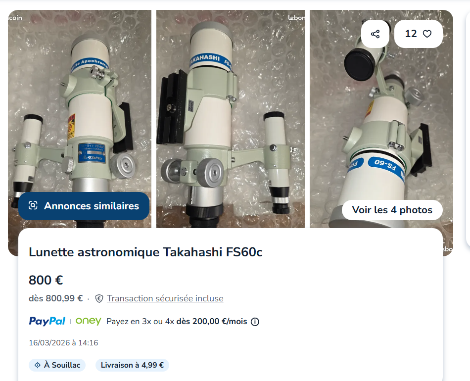 4. Ceci explique cela, du coup. Auriez-vous une idée d’où je pourrais trouver des annonces d’occasion ailleurs ? À vrai dire, je n’ai trouvé que Leboncoin, et il y en a très peu… Peut-être des groupes d’amateurs qui vendent de l’occasion ? J’ai déjà mis une annonce sur le forum, au cas où.