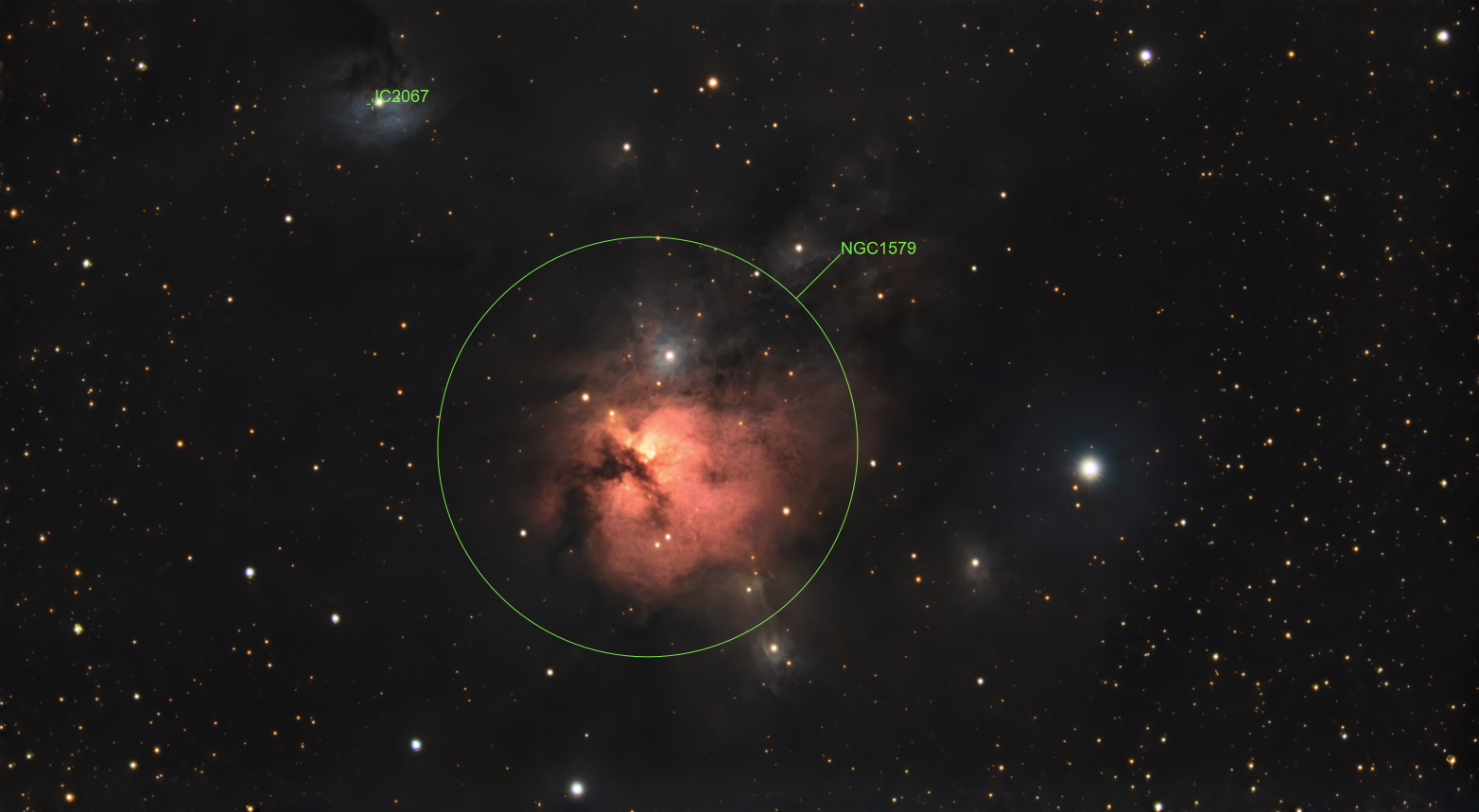 Hello, Image inédite pour moi, jamais faite encore, à savoir la Trifide du Nord. Réalisée avec le C8 en mode rapproché. NGC 1579, aussi appelé la Trifide du nord, est une nébuleuse diffuse située dans la constellation de Persée. Elle renferme une nébuleuse en émission et une nébuleuse par réflexion . Elle a été découverte par l'astronome germano-britannique William Herschel en 1788. Cette nébuleuse est illuminée par LkHα 101, une étoile rougeâtre massive dont la luminosité est supérieure à 8000 fois celle du Soleil. Cette étoile fait partie d'un jeune système binaire. On pense que ce système binaire est entouré d'une centaine d'étoiles moins massives et donc moins lumineuses. SCT Celestron C8 (203/2000) + réducteur Antares 0.63x + réducteur TS CCD47 0.67x focale @ 881mm f/d 4.3 Caméra QHYminicam8 mono Monture HEQ5 kit courroie Rowan Autoguidage via lunette guide 60/270, Asi290mm / PHD2 Acquisition NINA L= 449 x 30s R= 75 x 60s G= 71 x 60s B= 70 x 60s Mode Full Gain 82 offset 30 T° -10°C Pré-raitement Sirilic/Siril , Pixinsight. SetiAstroSuite Pro. Une brute de 30s filtre L: