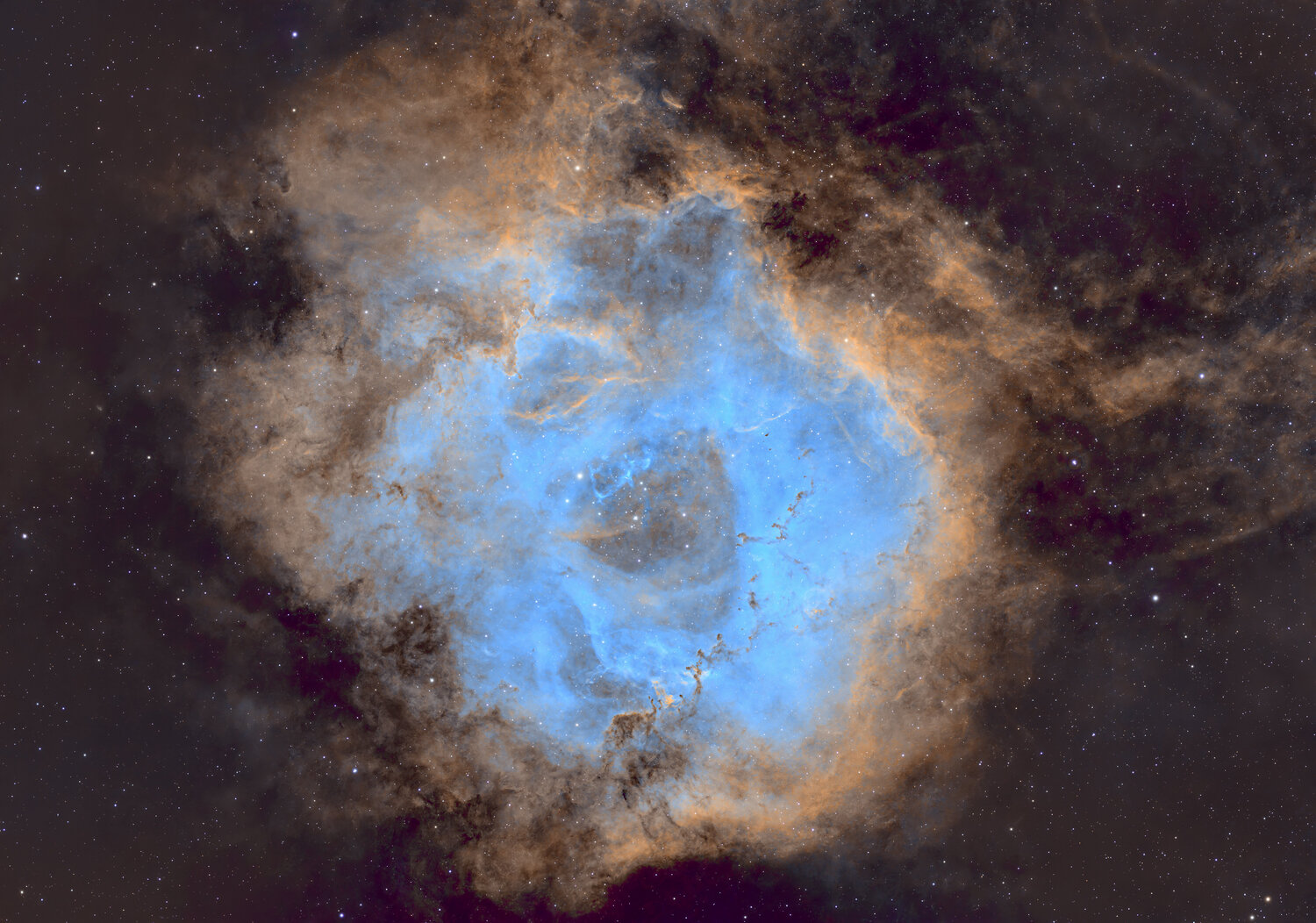 J'ai repris totalement le traitement car dans les 2 versions précédentes, je perdais pas mal de Ha Donc, une version 3 plus dense au niveau des nébulosités et plus conforme je pense à l'esprit SHO -