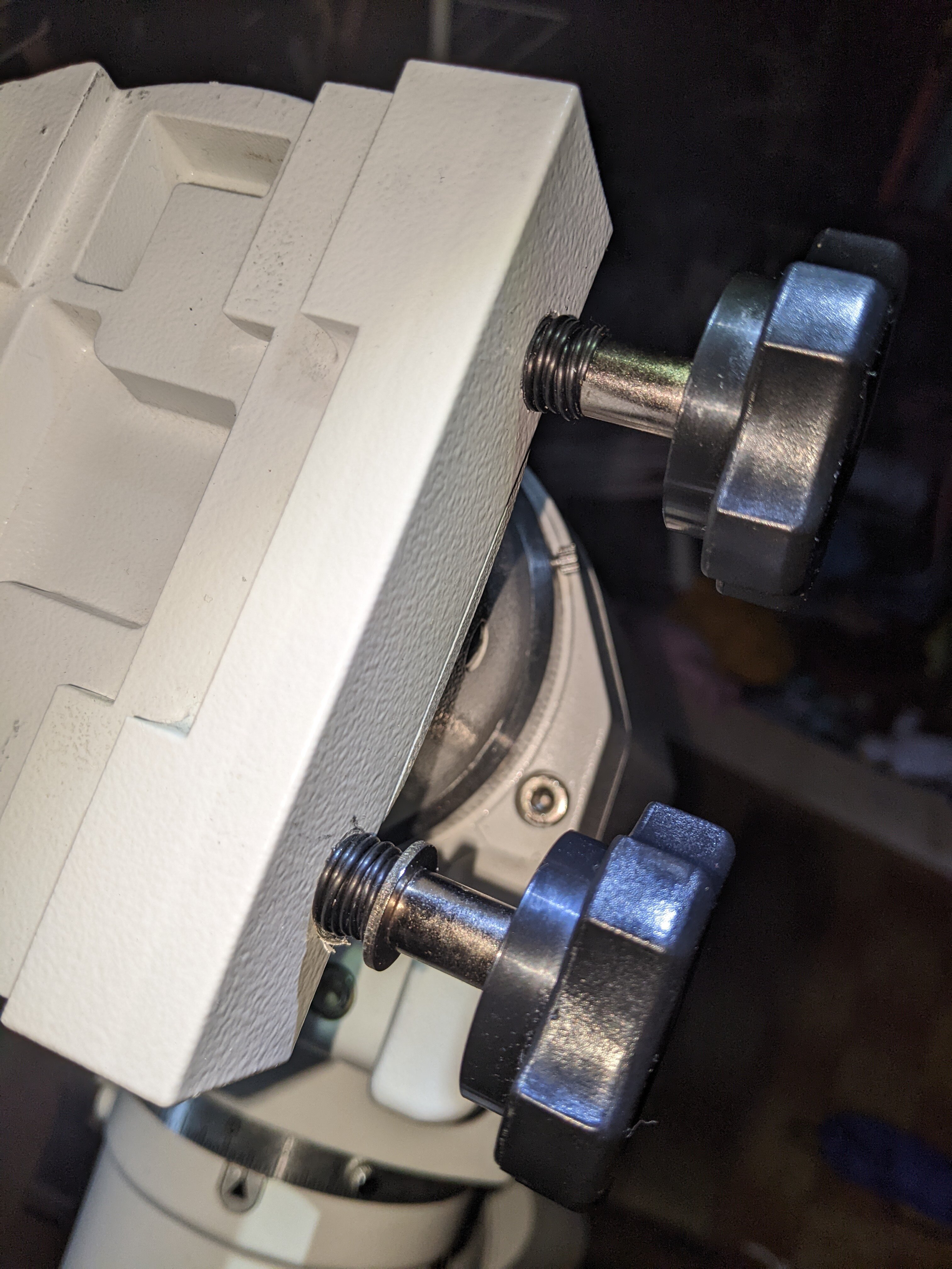 Hier soir, J'ai tenté d'observer Jupiter avec un nouvel oculaire 7mm Nirvana. Pas facile dans les conditions actuelles mais ces premiers tests sont prometteurs vu les détails que j'arrivais à voir malgré le voile nuageux. Mais j'en ai aussi profité pour tester le suivi de la vieille monture fourche du C8, je savais qu'elle fonctionnait mais je n'avais pas de prise adapté, du coup j'en ai fabriqué une. Alors ça fonctionne bien 😊, je vais pouvoir faire des vidéos beaucoup plus longues que je pourrai traiter ensuite en suivant vos conseils, vivement le retour des belles nuits ! -