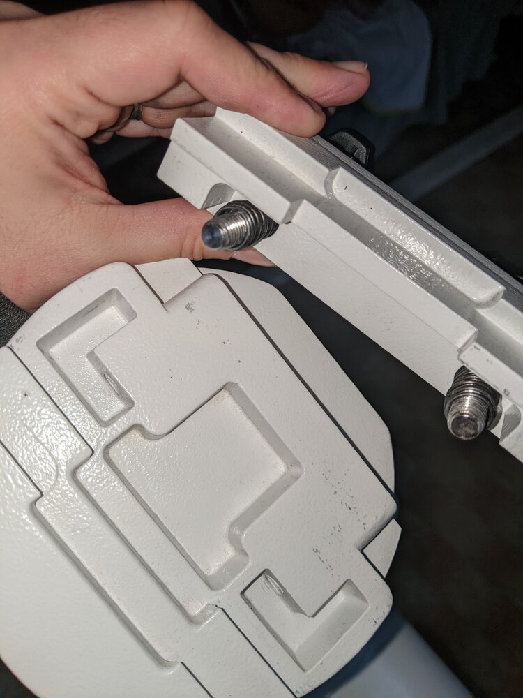 Le ressort des vis n'est ni à l'intérieur de la platine amovible, ni entre la platine fixe et la platine amovible (photo 1). J'ai changé la position des ressorts comme sr la photo 2, ça me semble bien plus correct non ? Et de cette manière la platine mobile peut se desserer et serrer, et je devrai pouvoir normalement fixer ma queue d'aronde. Effectivement c'est mieux, la queue d'aronde est fixée : -