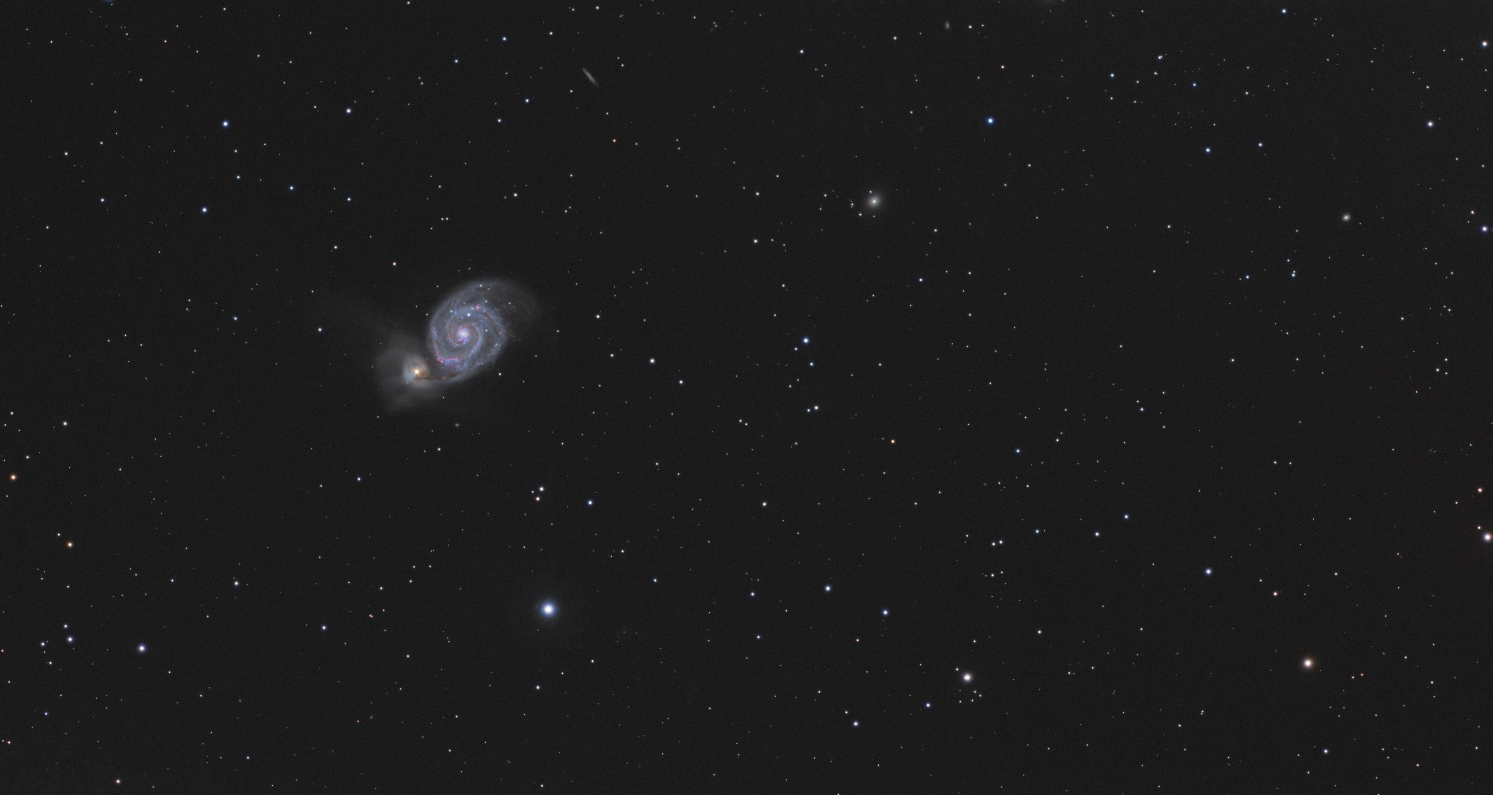 Hello, je suis vraiment une quiche en LHa RGB et j'ai fait une petite prise de vue l'autre nuit dont le résultat me laisse perplexe. Si vous avez le temps et l'envie j'aimerais bien voir ce que vous pouvez faire de ça et surtout me décrire comment vous procédez. Si vous avez des ressources en français ou anglais je suis preneur. Sachant que j'ai déjà écumé pas mal Youtube, mais il n'y a pas l'air d'y avoir de technique absolue dans le domaine. Les fichiers LRGB et Ha en fits : https://www.swisstransfer.com/d/72609d9e-6820-47ca-a7f2-61852da16d59 (le lien est valable 30 jours, si vous passez par là au-delà de ce délai n'hésitez pas à me contacter pour je le réactualise). Tous les détails technique sur Astrobin : Ma version à ce jour : - Aujourd’hui
