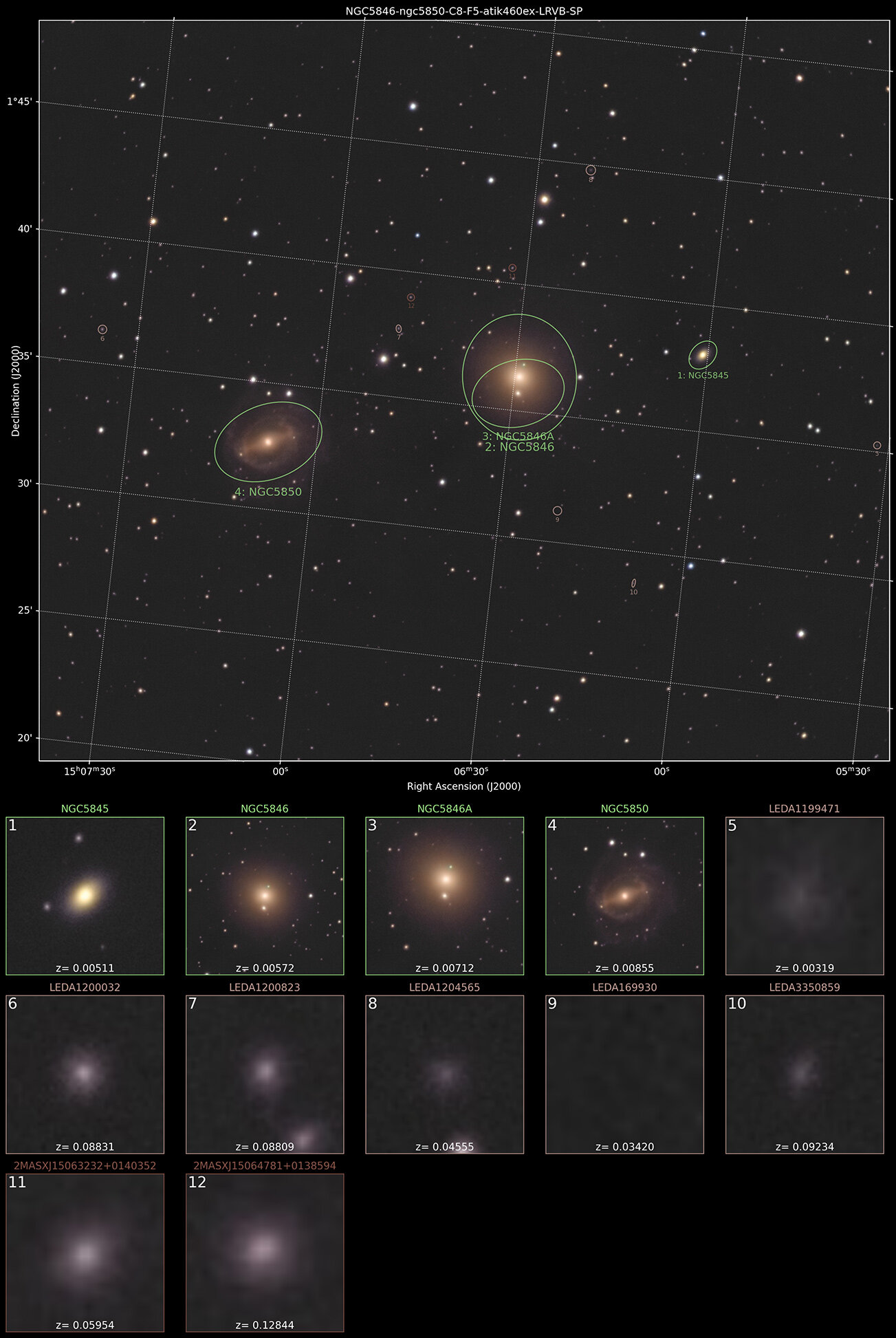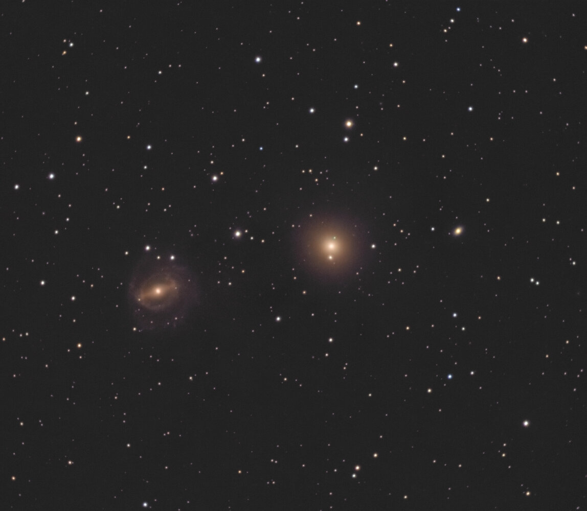 bonjour à tous, un joli couple (apparent) galactique dans la Vierge faite en fin de nuit le matin du 26 Février dernier depuis ma Beauce. Toujours flat synthétique mais aussi une fin de nuit bien humide (limite brouillard ) qui a encore plus mangé le signal faible C8 + réducteur 0.5 optec + filtres LRVB astronomik + atik460ex sur Ragdoll 17 Pro autoguidage en // avec Evoguide 50ED et zwo178mm avec glasspath x1.7 acquisitions NINA L : 14 x 300s en binning 1x1 RVB : 6 x 180s avec en binning 2x2 prétraitement imageviewCA, Siril traitements Siril, photoshop , Setiastro suite, SCUNet A la taille d'acquisition, fortement recadrée Annotation script siril : a+ stéphane