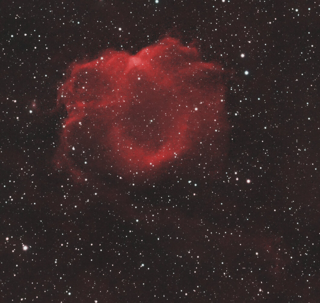 Bonjour Plus d'un mois sans voir le ciel, hier le vent a chassé les nuages mais bon il restait de l'humidité avec toute la flotte qu'il est tombé ces derniers temps (les escargots doivent etre content) Du coup j'ai sortit le telescope et j'ai fait quelques photos (pas beaucoup car le ciel n'etait pas clément. N'empeche j'ai pu m'amuser sur Merope et IC349 je voulais voir ce que cela donnait avec le C8 à 1400mm de focale et l'asi 585mm. J'ai fait plusieurs test et je vous les partages et bien elle apparait rapidement meme si elle est toute petite. Environ 100 poses à 500ms Environ 30 poses de 2sec Environ 12 poses de 5sec Environ 30 poses de 10sec Environ 4 poses de 60sec Amicalement