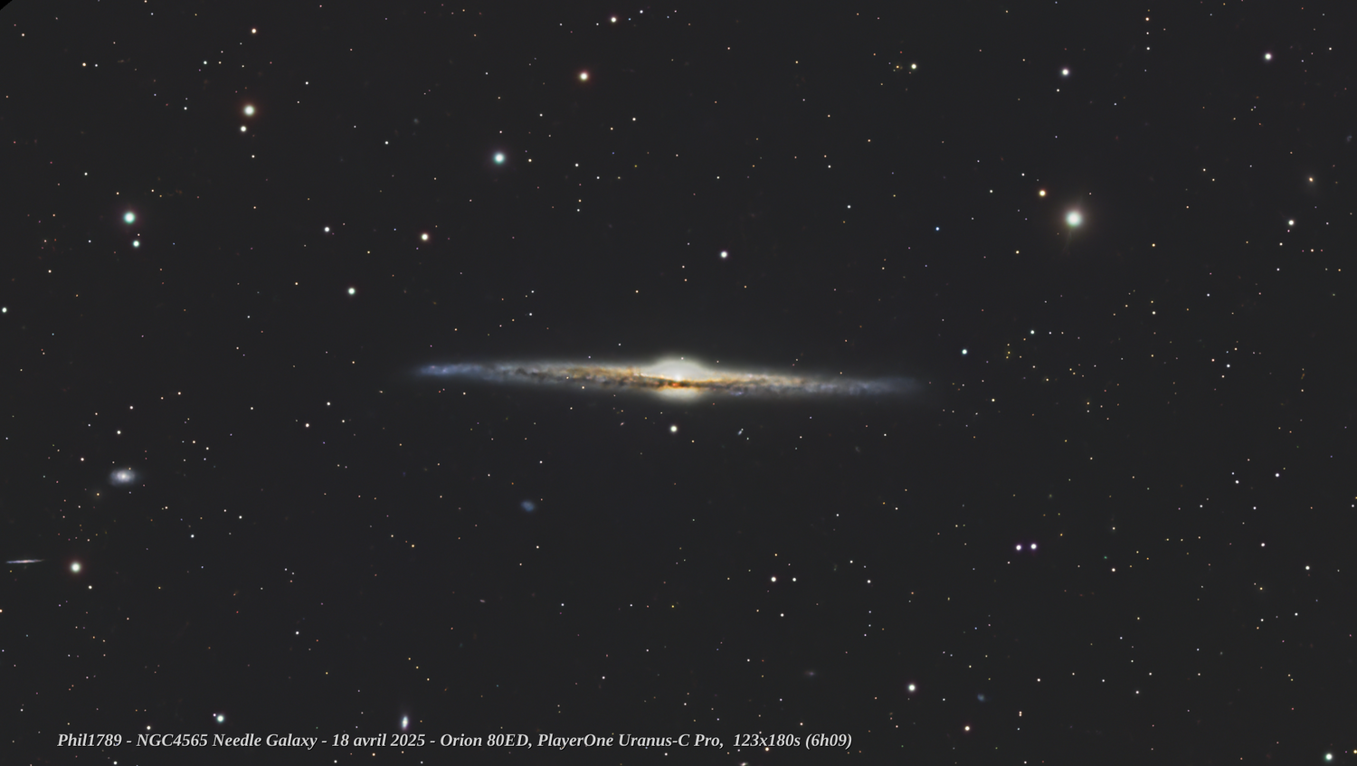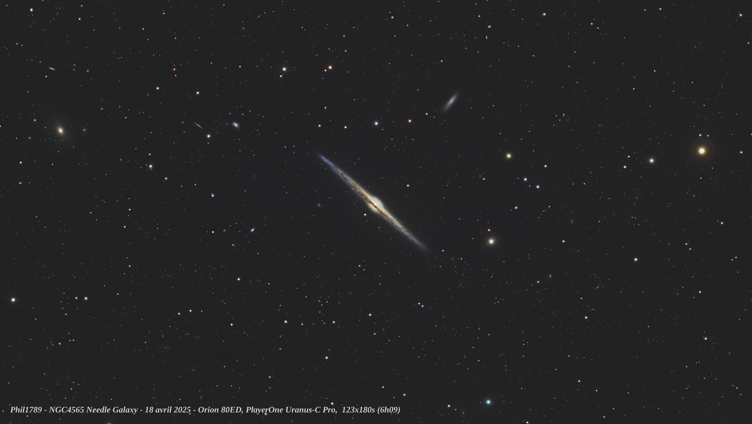 2. Toujours dans mes expérimentations Pix, tentative de retraitement d'une session d'avril 2025 Orion 80ED, Uranus C Pro, URCut. 123x180s conservées Crop: Champ complet: