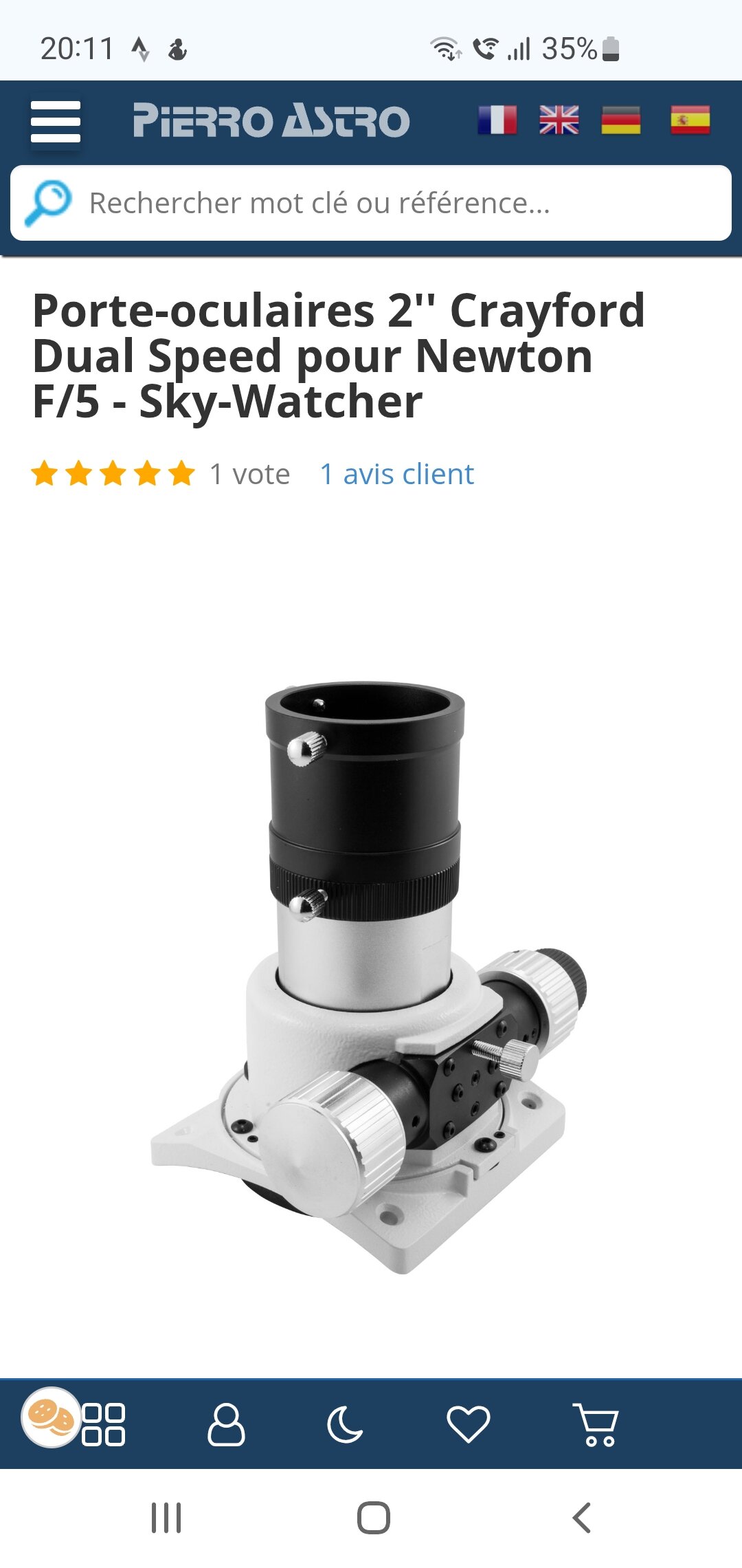 Sur les SkyWatcher, le PO est un des plus gros point faible. Si tu le changes pour moi, autant partir sur un bon truc, le modele que tu montre c'est un modele moyen (un peu de jeu, du tilt potentiellement) avec juste le dual speed. Donc ou tu ajoute le dual speed pour 90 balles sur le PO existant, ou tu passe a un vrai PO a Crémaillere (plus stable) entre 250 et 300 euros.