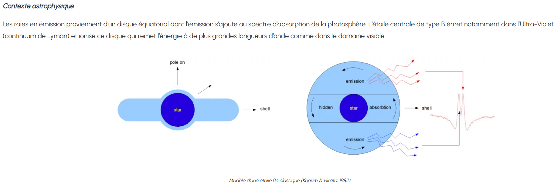Je trouve plusieurs explications qui semblent tourner un peu autours des même causes, mais rien de franchement franc.. Les Be sont un sujet encore en phase de compréhension. L'explication de @Le jupitérien est pas mal aussi. Je ne suis pas physicien, je me garderai de la critiquer ! Il y a ça sur le site de Shelyak - https://www.shelyak.com/les-etoiles-be-classiques/ Ces profils semblent être les cas "courants". Pour Electre par contre, ça ne se bouscule pas pour l'expliquer... Nada ! J'ai fini par trouver des profils qui ressemblent fortement au cas d'Electre mais sur H gamma, pas sur Ha. Le distinguo étant fait entre ces longueurs d'ondes, je me garderai bien de penser avoir trouvé l'explication pour le Ha... Le pdf est joint. Je vais laisser reposer et attendre qu'un astrophysicien passe dans le coin.. et commencer un autre TP, plus reposant j'espère ! J'ai fait l'acquisition au pif, je dois bien avoir merdouillé quelque chose La suite au prochain numéro ! 1-s2.0-S2090997712000132-main.pdf -