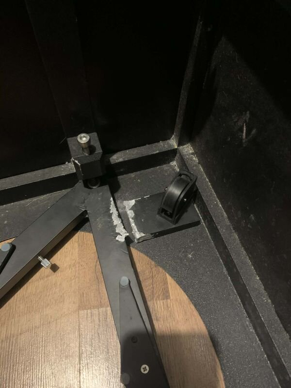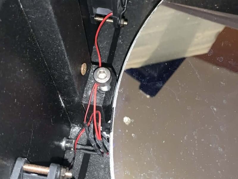 Bonjour à tous. Je partage ma petite aventure d'aujourd'hui avec le fameux Dobson 16". Il y a déjà pas mal d'années, une dame dont le mari est décédé a fait don à notre association du matériel astronomique qu'il possédait et notamment un Explore Scientific 16". Les membres qui l'ont récupéré ont essayé de le collimater en vain. Il y a une vis de réglage qui arrive en butée avant d'aligner le laser. Du coup il est resté ranger dans un coin pendant encore pas mal d'années avant que j'arrive dans l'association et que finalement on doivent ranger et faire du tri et que je le récupère pour le remettre en état et enfin s'en servir. Je pense qu'il a du resté 5 ans sans bouger dans l'association, en plus du temps qu'il a dû rester stocker chez la dame en attendant qu'elle nous le donne. Et je pense qu'il n'a pas aimé. Au début je pensais que le miroir était très sale, j'avais peur qu'il soit oxydé, mais ce fut tout aussi, voir encore plus grave. Voici les dégâts que je fais ressortir à l'aide d'une lampe qui éclaire le côté du miroir. Je ne sais pas si c'est l'oxydation qui a fait ça, mais les traces blanches sur l'aluminure c'est en fait les endroits où il n'y en a plus et c'est la lumière qui passe à travers. Bon, le traitement est foutu, tant pis, pour du visuel ça fera en attendant qu'on le fasse réaluminer. Je regarde le problème sur la collimation et je vois que le barillet est tordu. Je n'ai pas pris de photo avant de démonter mais j'ai fait une sorte de reconstitution et en gros il ressemblait à ça. En rouge, c'est pour montrer qu'il n'y a pas le même écart des 2 côtés, en bleu la roulette est tordu et en haut en jaune il y avait une mousse. Je pense que la boite est tombé et que le miroir a tordu la patte qui tient la roulette entourée en bleu, et l'ancien propriétaire à mis de la mousse en haut pour essayer de "caler" le miroir. J'ai commencé par essayer de redresser la patte mais comme c'est de l'aluminium... Crack ! Et comme le barillet était un peu voilé je me suis dit peut être en fabriquer un autre car pour souder de l'aluminium... Et finalement après avoir passer pas mal de temps à faire des plans, à me prendre la tête sur les dimensions, car il a vraiment des dimensions à la c** ce barillet, j'ai décidé de le redresser. Et après une bonne heure j'ai réussi à le remettre droit ! Du coup, demain j'achète 2 pattes en fer ou en alu et je fait un système fixer la patte cassé avec des vis. Pas besoin de remplacer le barillet ! (Youpi !!) Par contre, en essayant de faire des plans pour le barillet, je me suis aperçu que même avec si les pattes sont droite, quand le miroir repose sur les roulettes il n'est pas centré par rapport à la boite. J'ai vérifié et la boite est bien carré. Et quand je centre parfaitement le miroir, il est collé complétement contre le support de la vis de collimation en haut. Je vais y mettre un petit scotch ou une petite mousse pour protéger. Et en bas, la roulette ne touche pas. J'ai dévissé la roulette (j'en ai bavé parce que les écrous étaient collé) pour essayer de la rapprocher mais il n'y a pas assez de marge. Il va falloir que j'agrandisse les trous ou que j'en fasse d'autre. Voilà la petite aventure d'aujourd'hui ! La suite demain si j'arrive à réparer la patte qui a cassé. J'espère que ça pourra aider des personnes qui ont des problèmes avec, et je suis également preneur de tout autres conseils. Peut être qu'il faudrait que je lime un peu le support de la vis de collimation pour arriver à centrer le miroir au millimètre. Dites moi vos impressions, je ne pense pas que je me trompe en centrant correctement le miroir, mais surement que le mieux est l'ennemi du bien, donc je devrais rien limer et le laisser décentrer de 1 petit millimètre. -