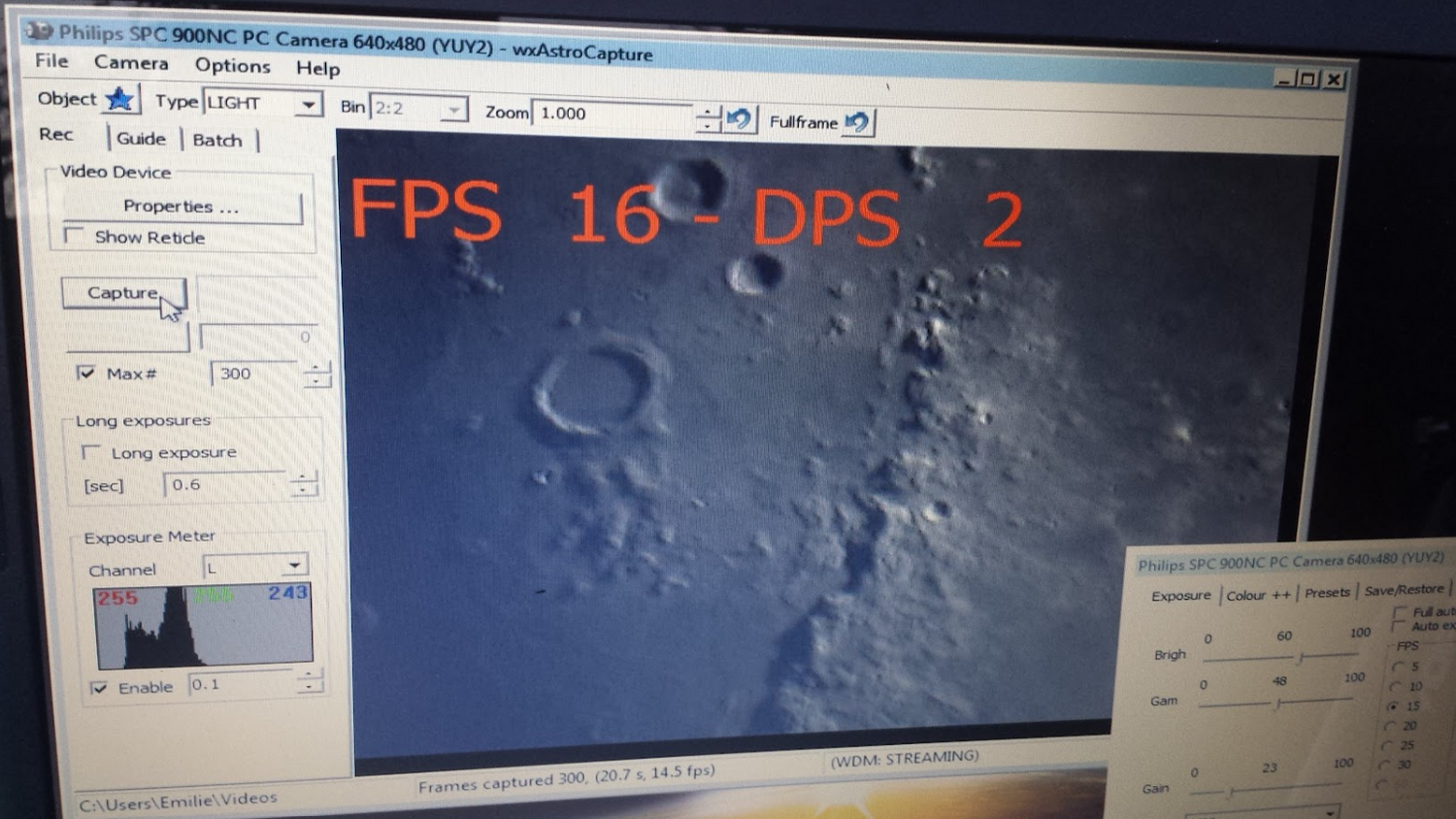Bonjour, hier soir j'ai oublié de répondre à ta question pour la mise au point. Alors personnellement, je fais une MAP à l’œil et ensuite je fixe le smartphone (qui est déjà réglé en position) sur l'oculaire et je prends mes vidéos. Sur le C8, j'utilise un renvoie coudé avec l'oculaire, je trouve que c'est plus facile pour fixer le smartphone. Hier soir j'ai aussi essayé Jupiter mais un voile nuageux et de la buée sur la lame de Schmidt ont eu raison de cette soirée astro (quand ça veut pas!) Bon ben ici, on est reparti pour plusieurs jours de nuages et de pluie 😒 -