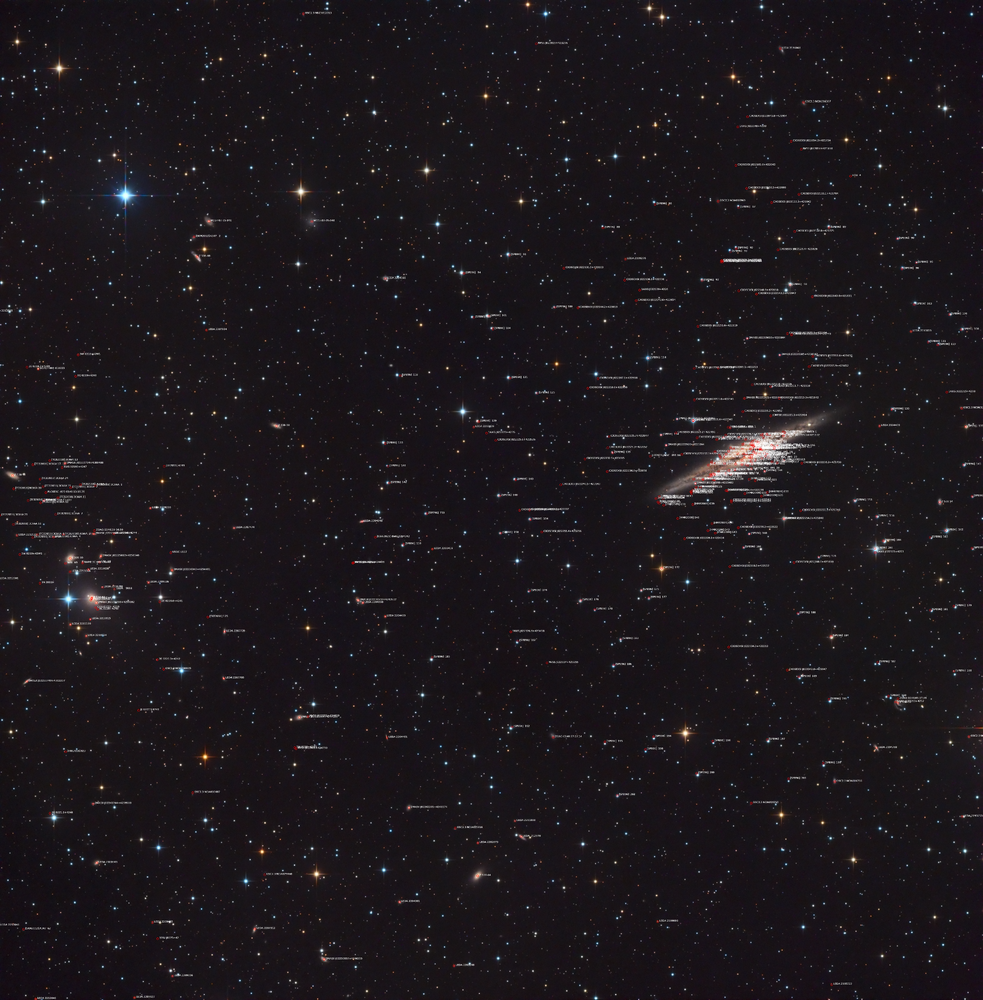 Merci pour tous vos retours Concernant le cadrage je souhaitais avoir cet amas dans le champ, habituellement les photos prennent plutôt les galaxies à droite de NGC891 je souhaitais changer un peu d'approche. Je souhaitais aussi avoir la galaxie très très diffuse PGC 8947 (MCG 7-5-40 sur l'image) et les petites qui l'accompagnent qu'on voit en haut à gauche de l'image.