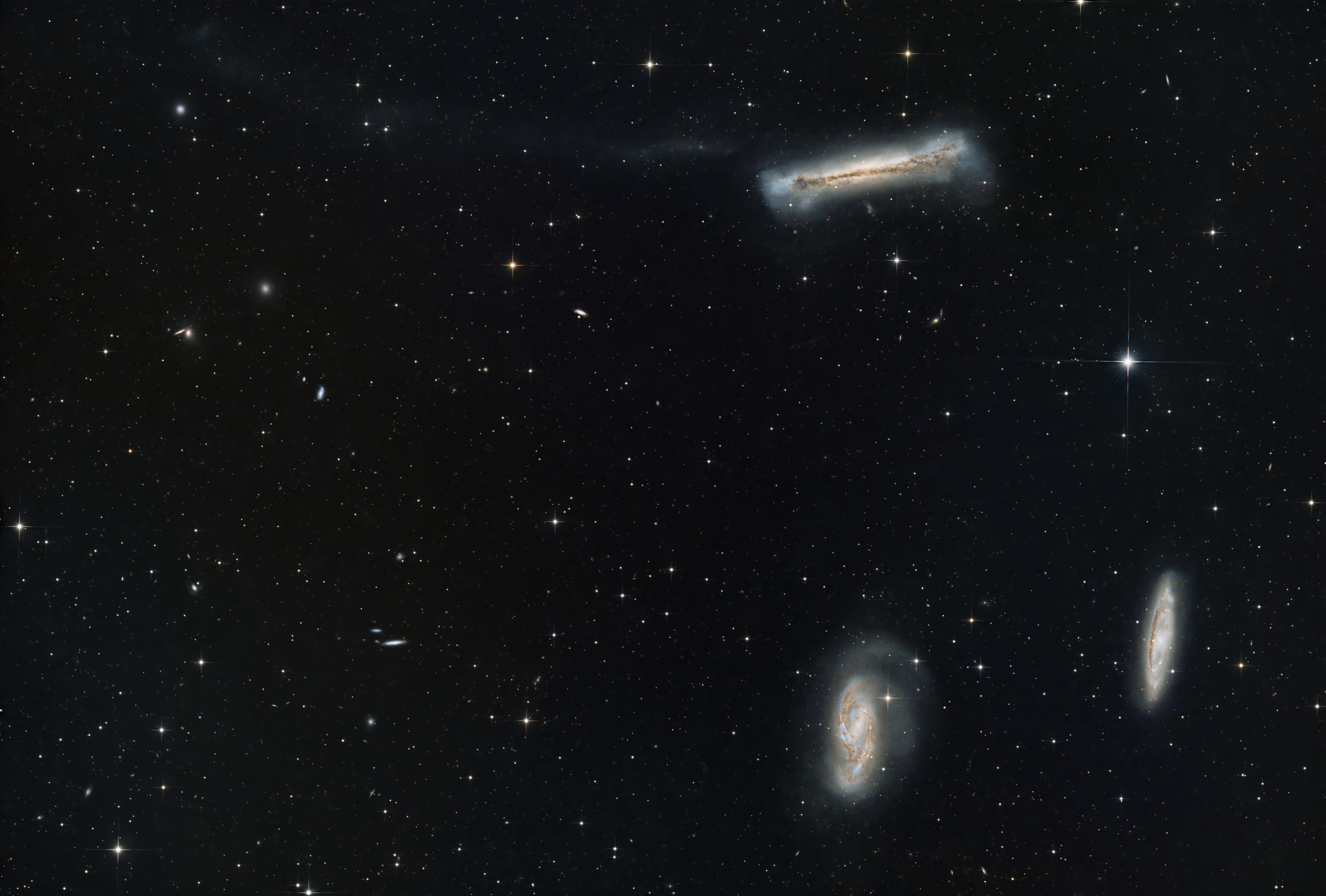 Triplet du Lion la nuit dernière Toujours un seeing pas top et un guidage pas top non plus (ça se voit dans le manque de piqué) ça doit faire au moins 3 ans que je ne l'avais pas tenté C'est fait : on voit la queue de marée de NGC3628 79x180s