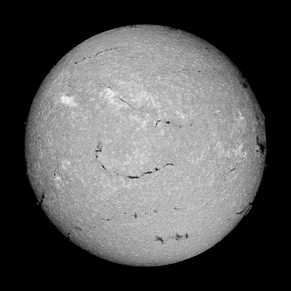 3. Soleil du jour juste avant le changement de temps ..... SGH700, SVBony 102/660, une seule passe en Ha et Doppler . Traitement Jsolex et LR