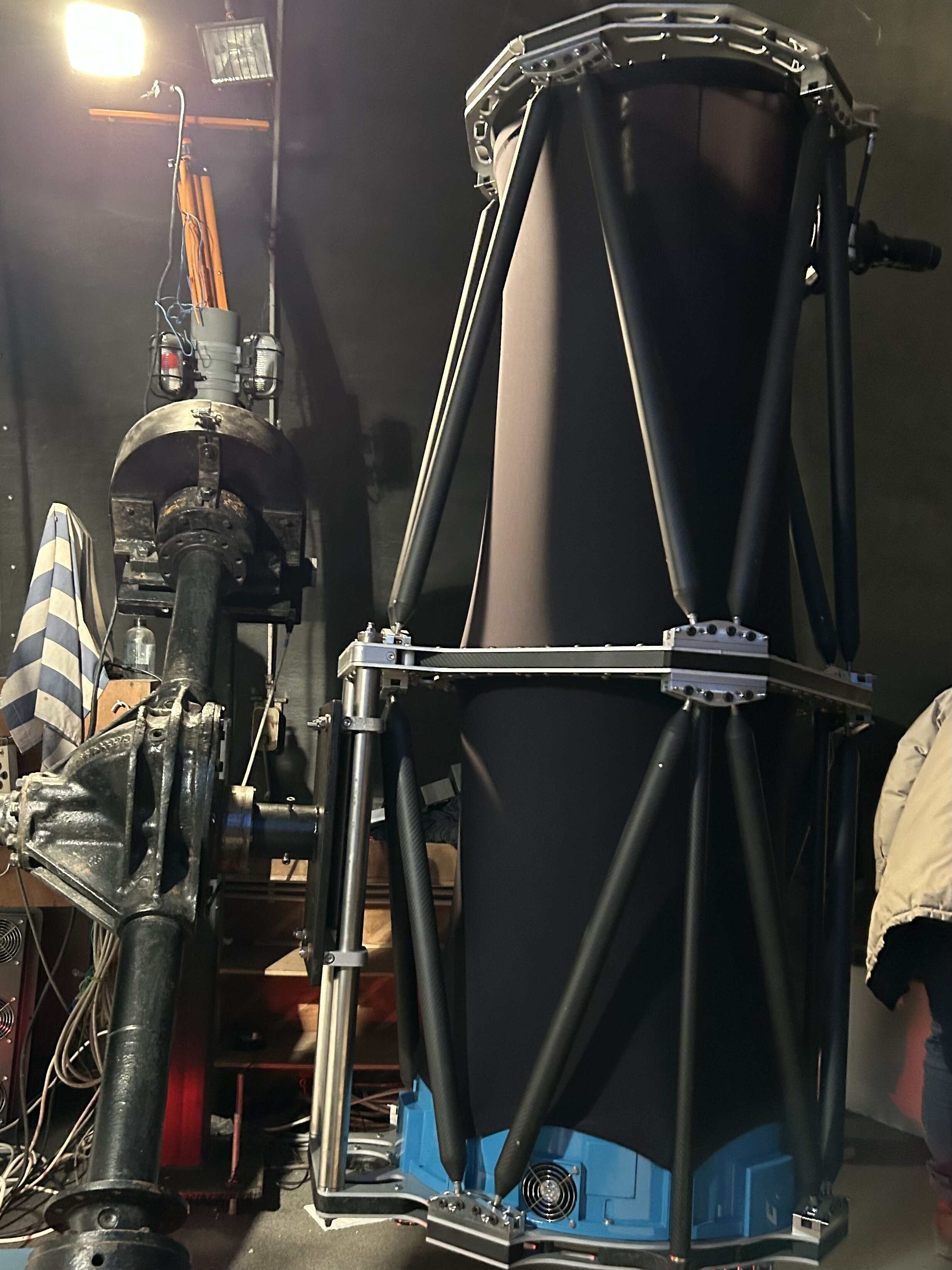 Bonjour à tous, Pour ceux qui suivent mes posts, vous aurez pu remarqué que j'ai fait une longue pose sur les deux T250 split ring. La cause, un projet plus ambitieux encore et plus prenant avec une plus grande priorité. Il s'agissait de refaire complètement le vieux tube en bois historique du T500 du club GAP47 (Montayral, Lot et garonne), car celui ne donnait pas satisfaction. Les causes : barillet trop imprécis, variations trop importantes de collimation, effet de convection dans le tube, .... et j'en passe. Avec quelques collègues, j'ai donc eu la charge (la joie) de faire une nouvelle conception plus moderne, avec un barillet précis, motorisé et une monture très rigide ouverte type serrurier. Le logiciel de conception habituel : SolidWorks (for makers) Les techniques de fabrication : Usinage conventionnel (ma partie) , usinage 3D, Découpe laser (Aluminium et inox) , impression 3D (ABS, PET-CF17, PA-GF30), carbone forgé. Première lumière la veille du dernier RICAR chez nous au GAP47 le 10 Avril 2026, sur jupiter. Je vous partage quelques photos ... Résultat : particulièrement tous satisfaits, collimation très précise et stable, réglage simple et très fin. On envisage maintenant assez sereinement le système d'imagerie, le T500 est équipé d'un PO 3 pouces. bonne lecture et visualisation ... AK. Le T500 V1.0 Le T500 V2.0 Sur sa monture ("essieu de camion") Le barillet motorisé : Détail attache des bielles carbone : Fabrication pièce de structure en carbone forgé : La raquette de collimation
