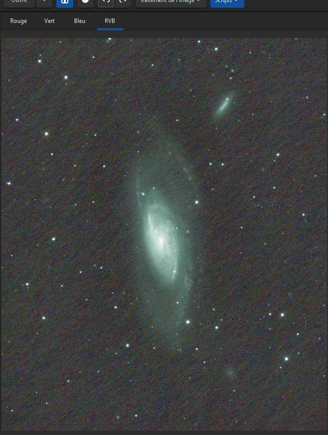 Bonjour à tous, Ces deux derniers jours j'ai pu profiter du beau temps pour m'exercer sur quelques galaxies... Mais lors du traitement, Horreur ! Une trame infâme vient se coller sur chacune de mes photos ! Vous me direz : eeeeeeet oui le dithering tout ça tout ça.... Sauf qu'on m'a toujours vendu que le suivi sans autoguidage, avec ses imperfections, suffisait ! Et c'est vrai que jusqu'ici ça s'est toujours passé nickel. Voici quelques exemples : dont je parle dans ce post : Je me dis boooon, ça ne peut pas ariver deux nuits de suites, si ? et donc je commence à empiler les images de la deuxième nuit: Et Et si, avec des poses de 30 secondes aussi. Ma question est donc : suis-je juste malchanceux ? Il faut donc faire du dithering sans autoguidage aussi ? Le problème ne vient pas de mes darks à priori comme ils viennent de ma bibliothèque, et ces trames n'ont pas l'air d'etre celles de darks mal intégrées... pourtant mon suivi est loin d'etre parfait, équilibrage rapide, MAS avec de l'erreur.... Peut il etre autre chose ? Merci d'avance pour vos éclaircissements