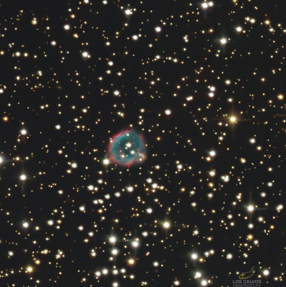 M46 and 2 NP NGC 2438 & M1-18 NGC 2438 est une nébuleuse planétaire située dans la constellation de la Poupe. NGC 2438 a été découverte par l'astronome germano-britannique William Herschel en 1786[1]. Selon les sources, la taille apparente de la nébuleuse est de 1,07 minutes d'arc[4] ou de 1,27, sa vitesse est aussi indiquée sur Simbad, soit +77,0 ± 5,0 km/s Des photos à très longue exposition montrent que NGC 2438 est doté d'un double halo. Le halo le plus externe vient probablement des premières phases d'expansion de l'étoile, alors que la portion centrale plus brillante s'est sans doute été formée lors de la mort de la géante rouge lorsqu'elle s'est effondrée pour devenir une naine blanche[1]. Selon Corradi et ses collègues, la taille apparente du halo externe est de 113" sur notre image sur la couche Ha on peut commencer à distinguer cette seconde coquille, mais trop faiblement pour qu’elle ressorte. On a longtemps pensé que NGC 2438 était un membre de l'amas ouvert NGC 2437. C'est assez étonnant vu l'âge des étoiles de l'amas et le temps qu'il faut à une étoile pour atteindre le stade d'évolution d'une géante rouge et pour donner naissance à une nébuleuse planétaire. Une étude[11] publiée en 2008 montre qu'il y a une différence d'environ 30 km/s entre la vitesse moyenne des étoiles de l'amas et la nébuleuse planétaire, ce qui démontre clairement que NGC 2438 ne fait pas partie de l'amas. De plus, NGC 2438 est à environ 2360 années-lumière, passablement plus près que l'amas M46 qui est à environ 4480 années-lumière. La nébuleuse apparait donc superposée à M46 parce qu'elle est dans la même direction. En haut de l’image du champ complet (version on distingue une autre petite NP, M1-18 ou PNG 117.4-01.5. (version C) L’image est en Ha- LhaRGBOIII et le champ complet est en drizzle 2x non réduit. Details et full sur Astrobin : https://astrob.in/g8u7nl/0/ URGENT : ce set-up est à vendre installé au Chili (observatoire El-Sauce), si vous êtes interéssé, contactez moi : rediger@hotmail.fr