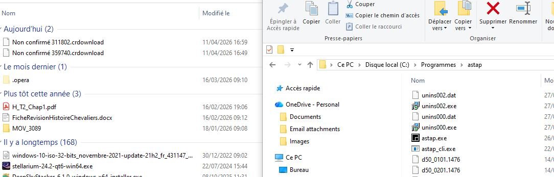 Oui c'est ce j'avais déjà fait mais je n'ai pas réussi à ouvrir ASTAP Voici ce que j'ai : Les programmer ASTAP telechargé et mon programme ASTAP que je n'arrive pas à ouvrir Je vais essayer de telecharger le programme sur le site -