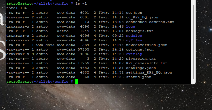 Vider le cache du navigateur Sinon : Vérifie que tu as les droits en écriture avec : se sonnecter en SSH, aller dans le dossier allsky/config et taper : ls -l Tu dois voir quelque chose comme ceci : rw (read-write)