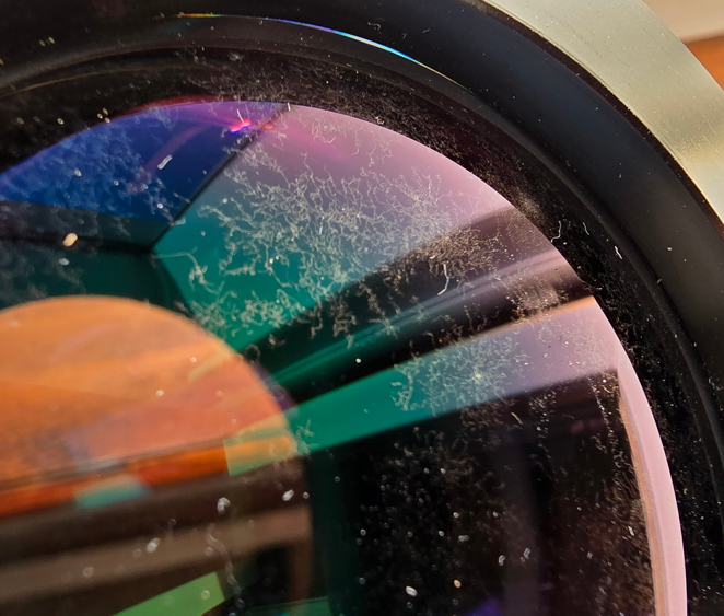 Bonjour J'ai acheté un C11 cet hiver avec son réducteur. Aujourd'hui j'ai sorti le réducteur de son carton... vision d'horreur. Magnifiques fungus, des 2 côtés ! J'ai déjà vu ça en photo sur de vieux objectifs. Questions : . Est-ce que quelqu'un a déjà tenté un démontage/remontage d'un réducteur ? Je n'y crois pas trop, il doit bien y avoir 3 ou 4 lentilles là-dedans, mais bon... . Medas saurait nettoyer ? Il était trop tard pour que je les appelle. Je saurai répondre demain D'autres spécialistes ? Une idée du prix ? . A part mettre au soleil, pour l'instant, rien à tenter ? Merci
