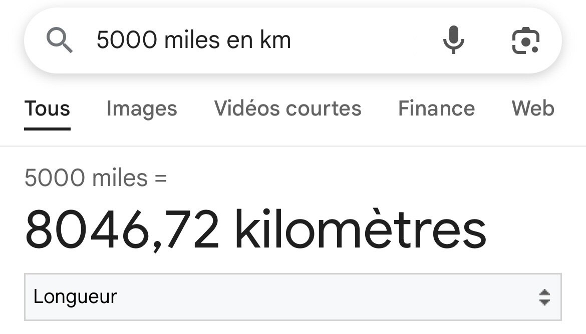5465 miles . Sinon il serait à 250 miles de la terre ( c’est les virgules américaines pour les milliers) -