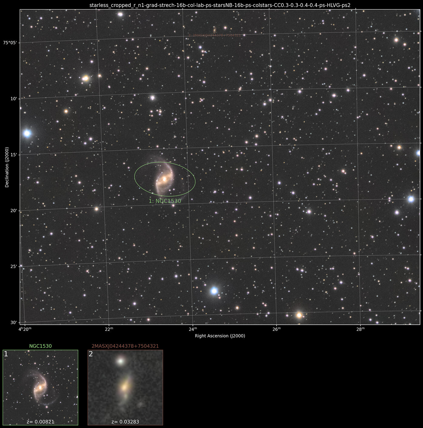 bonjour à tous, En ce 6 Février, un début de nuit à peu près dégagé au dessus de ma Beauce; mais j'aurais du me rappeler que ce n'est pas une bonne idée de viser dans la Girafe en cette période de l'année : non seulement j'étais juste au dessus de mon toit mais surtout au dessus de ma cheminée! Bref, ne pas attendre de la HD pour cette image (mais Cosmic Clarity s'en est bien sorti pour améliorer un peu tout ça) C8 + réducteur 0.5 optec + filtres LRVB astronomik + atik460ex sur Ragdoll 17 Pro autoguidage en // avec Evoguide 50ED et zwo178mm avec glasspath x1.7 acquisitions NINA L : 14 x 300s en binning 1x1 RB : 7 x 180s avec en binning 2x2 V : 6 x 180s avec en binning 2x2 prétraitement imageviewCA, Siril traitements Siril, photoshop , Setiastro suite A la taille d'acquisition Annotation script Siril : a+ stéphane