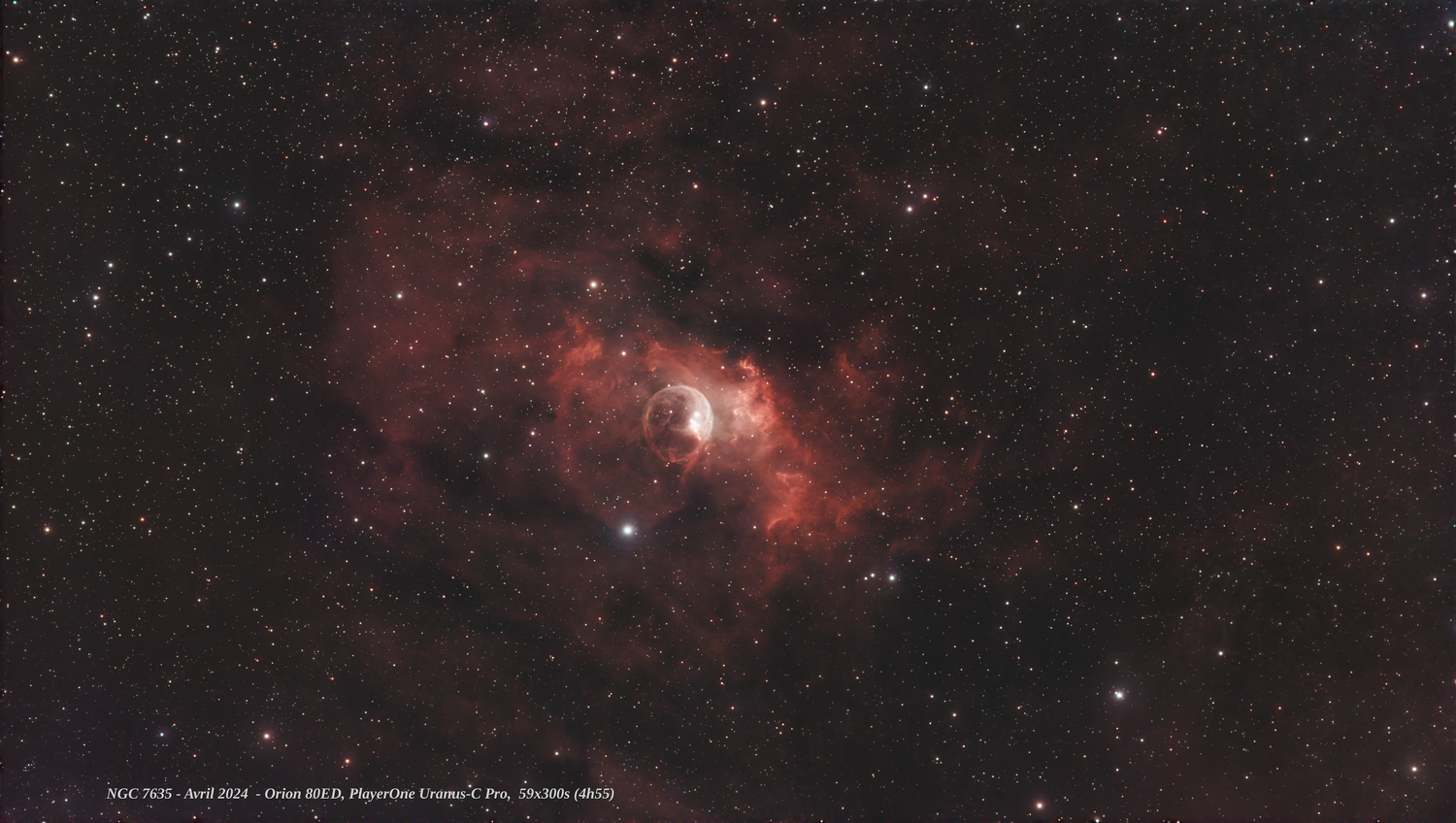 Hello, J'ai retrouvé une clé USB (encore une) avec une de mes premieres capture. Je n'avais pas l'Uranus depuis longtemps et j'etait loin de maitriser quoi que ce soit Gain mal réglé, pas de correcteur, mais j’étais bien content d'en sortir quelque chose avec des yeux de gamin devant une confiserie! Reprise avec Pix pour voir si je pouvais en tirer quelque chose 97 lights dont 59 conservées (oui le guidage c'etait pas ca non plus) sur une Orion 80ED donc sans correcteur, Uranus-C Pro, gain 140 de 300s en IRCut. Un peu moins de 5h au total La reprise (sous Pix et merci BlurX) et l'original de 2024 (Siril seul) : Et la version 2024 dont j'etais un peu fier