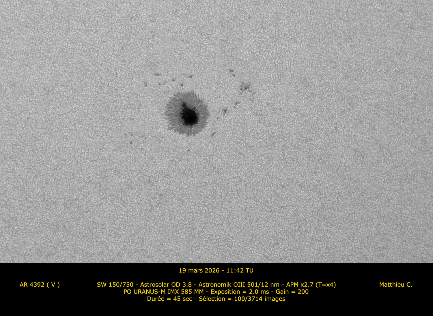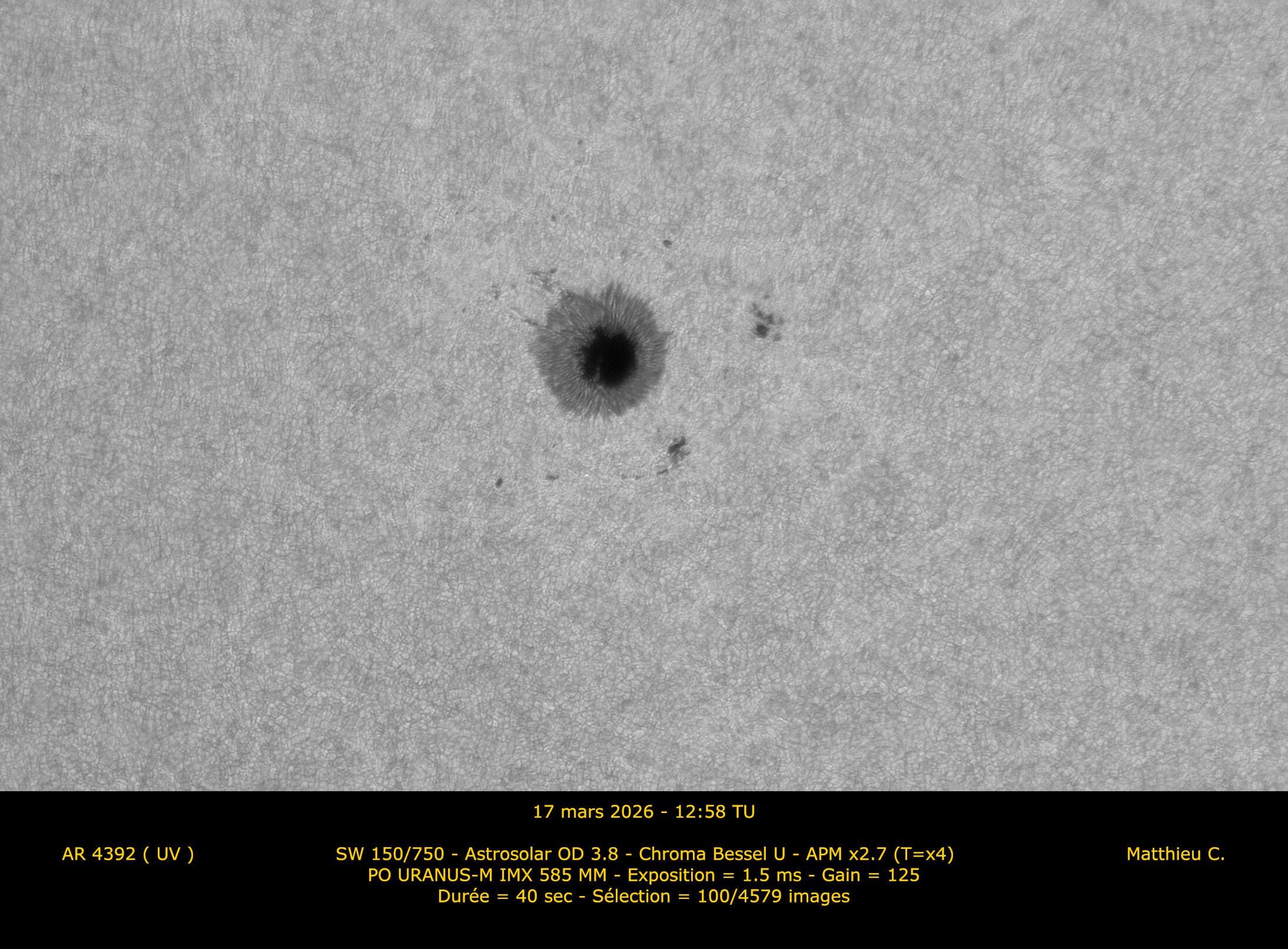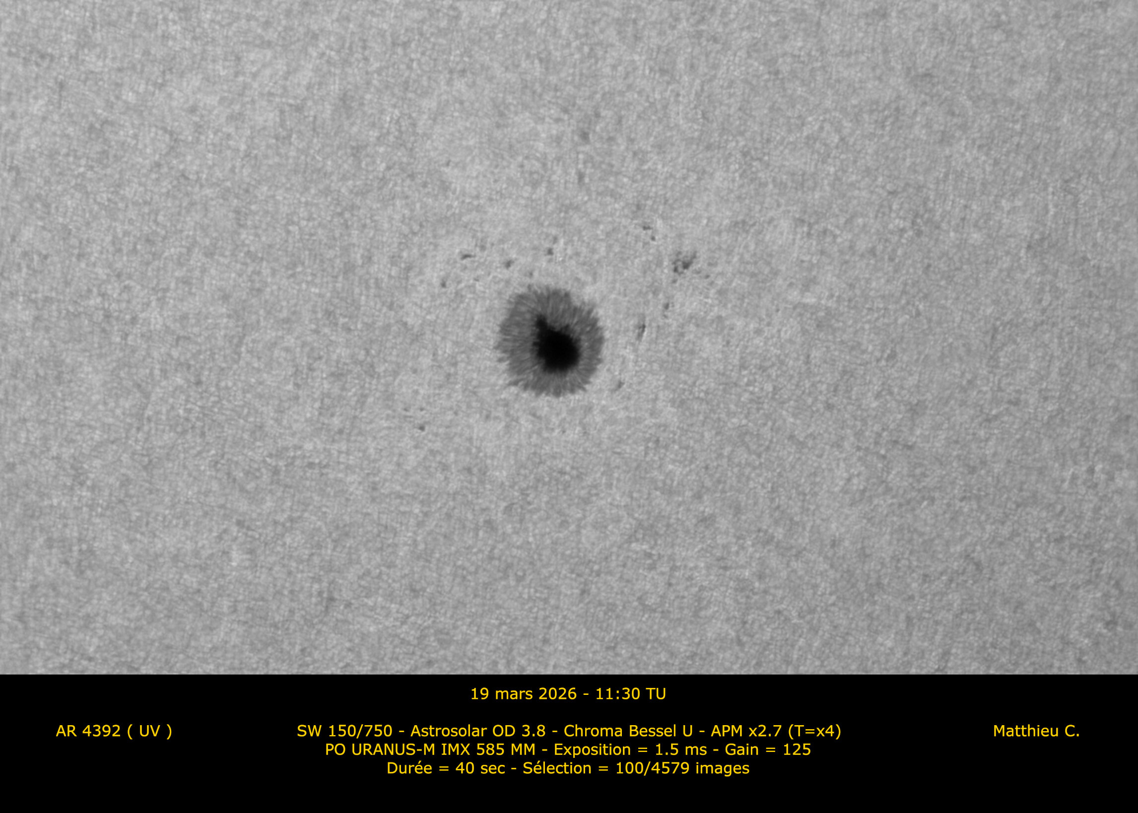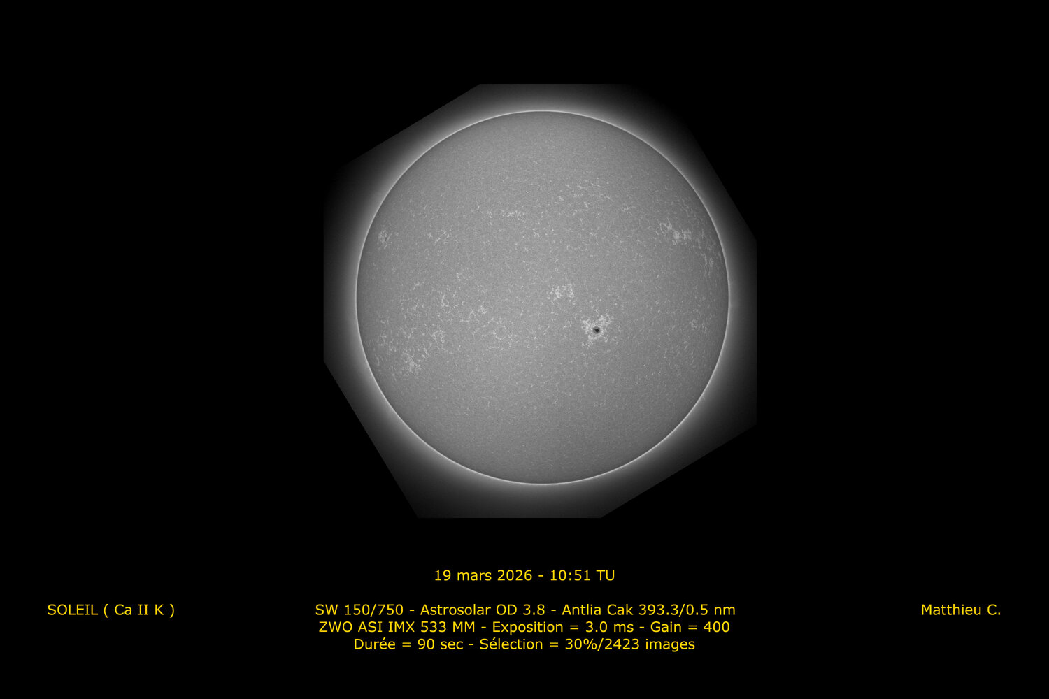 2. Bonjour à tous. Après cette époque d'élections, je me permets de mettre un peu en lumière les voies minoritaires du calcium et de la lumière blanche alors que la vague Halpha a largement remporté les appréciations de ce fil ces dernières semaines.