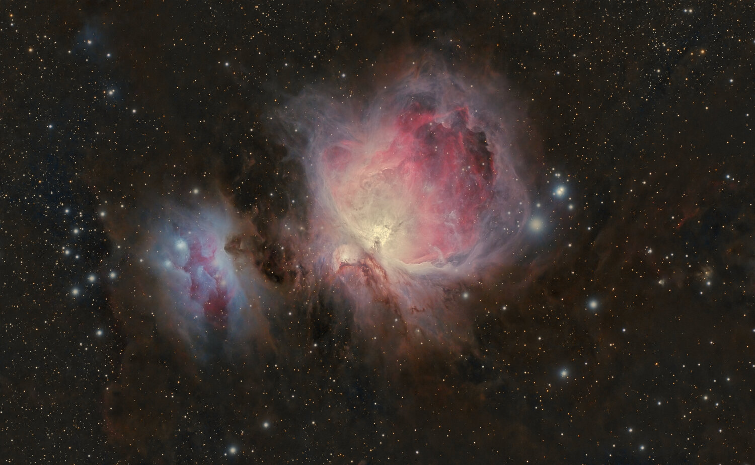 Pour ce début d'année, ma première astrophotographie de 2026. La classique mais toujours magnifique et pas si facile à capturer nébuleuse d'Orion, photographiée depuis mon jardin à Laval juste avant Noël. Bonne année à tous. Guy Pour la partie technique : composition HDR (20x5s, 80x30s) en RVB, Askar FRA500, ZWO ASI2600 MC Pro, Celestron CGX, prétraitement Siril, traitement Pixinsight, postraitement luminar Neo.