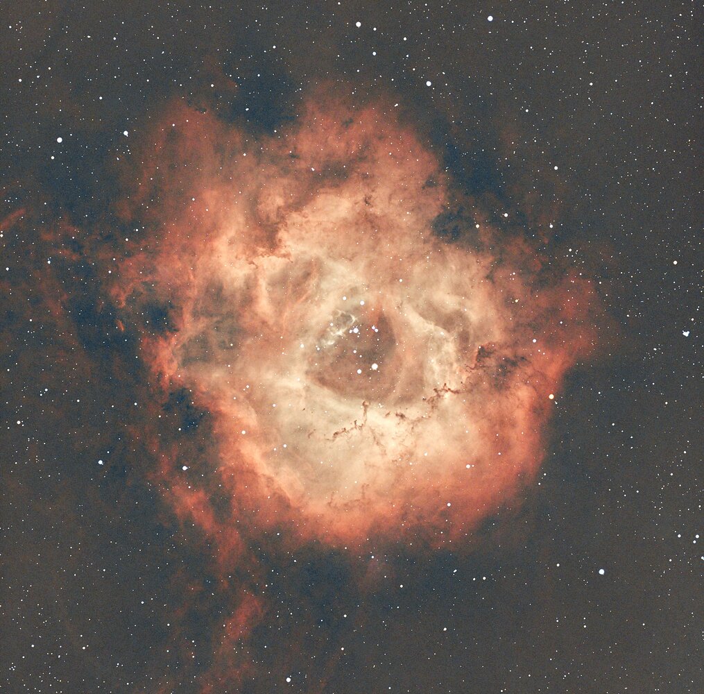 Bonjour Je l'avais faite à l'apn, la voici avec la caméra refroidie j'ai fais 70 poses de 5 mn avec le filtre L_EXTREM et 30 mn de pose de 2 mn avec le filtre UV IR CUT pour récupérer les étoiles le matériel Monture SW N EQ 6 PRO lunette askar fra 400 avec réducteur de focale F/D 3.9 caméra asi 533 mc pro lunette guide askar 30 x 128 caméra de suivi asi 662 mc piloté par asiair plus pour le traitement je n'ai pas fais de HOO, juste un empilage des 2 nuits siril, graxper, starnet et gimp Merci pour vos commentaire qui sont toujours précieux Yves