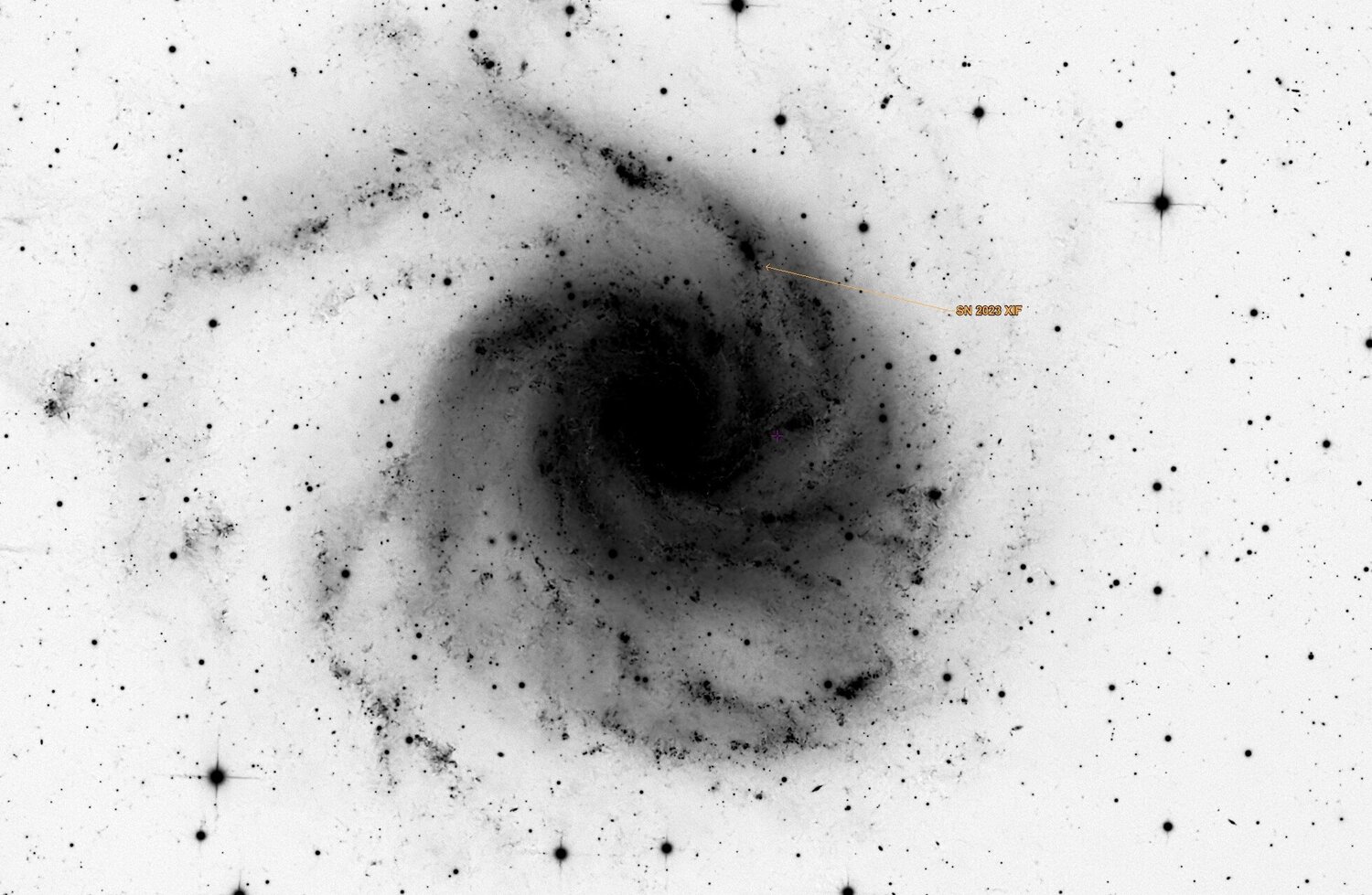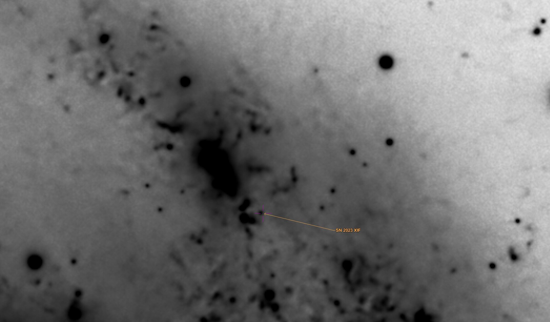 Oui bonne idée ! Je n'ai pas encore fait avec ce process , uniquement avec DSE et mixage pixelmath. Je viens trouver SN2023xif sur l'image . En mode inversé : -