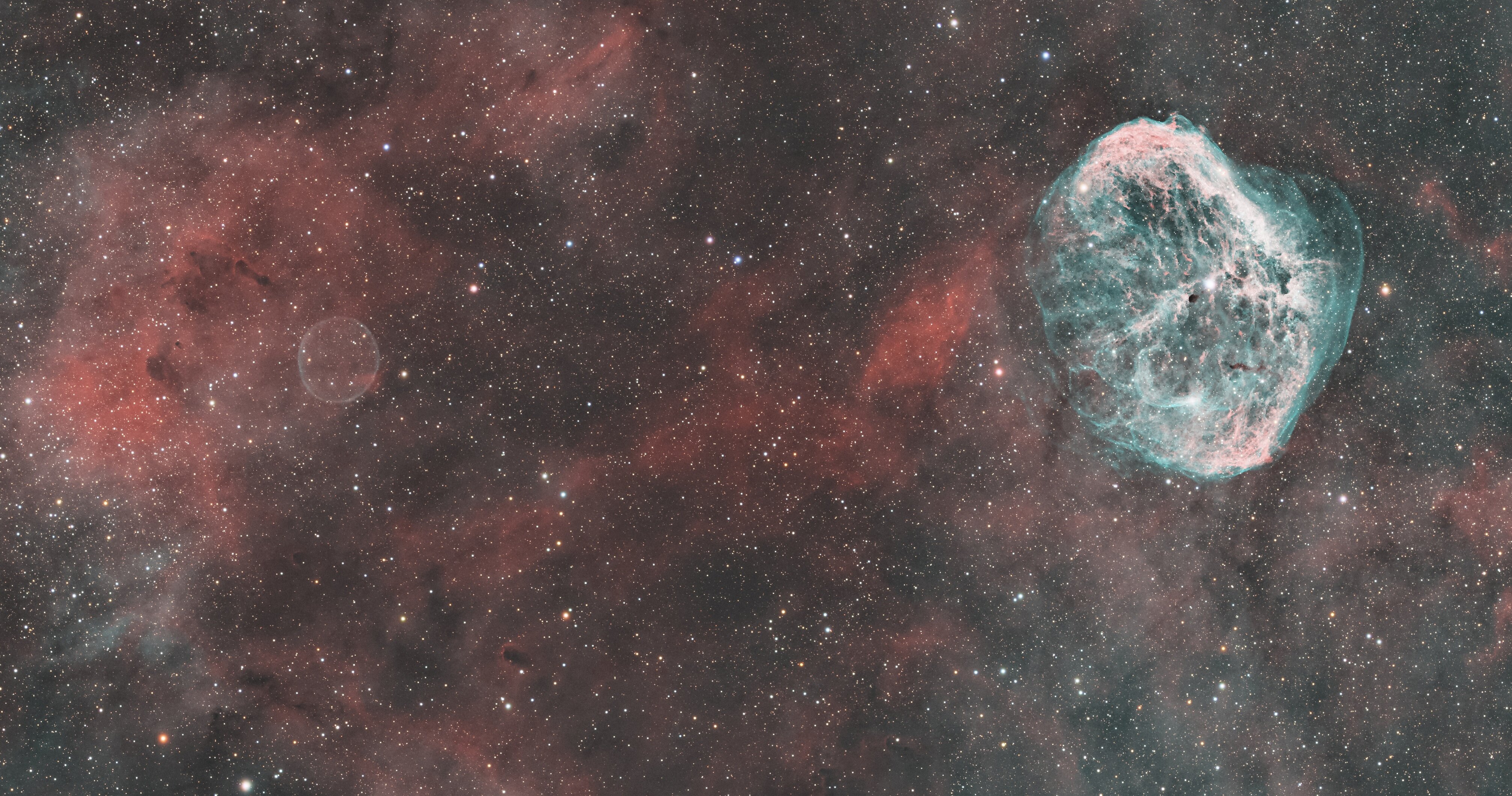 Duo Cosmique dans le Cygne : Le Croissant et la Bulle 🌙🫧