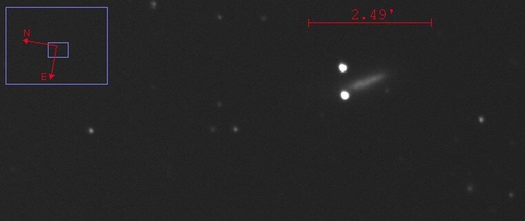 Voyez comme elle pète comparée à la photo du 19 mars ! Mesurée cette nuit à la mag 12.7 (toujours sans filtre). -