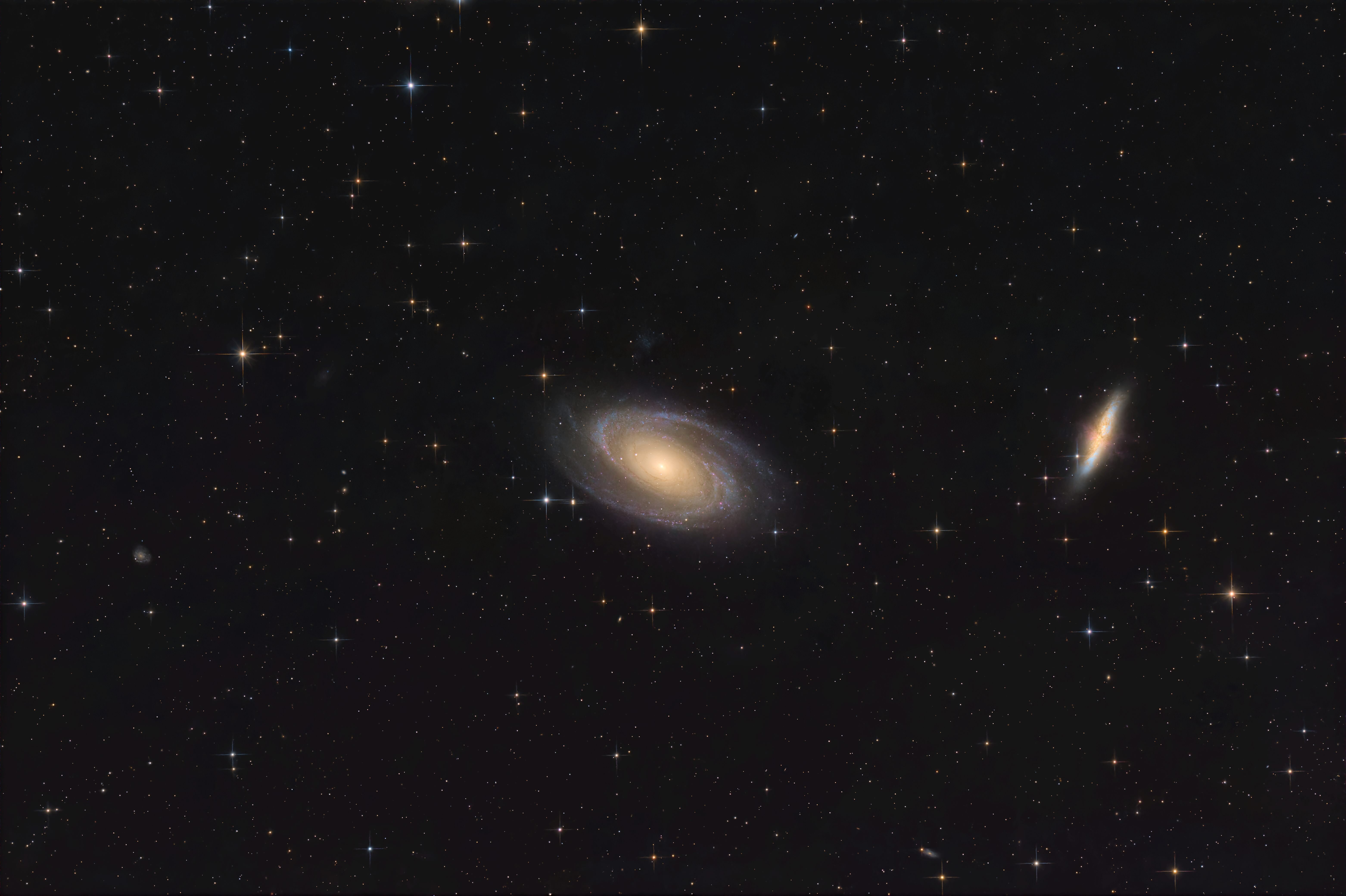 Qu'est-ce que tu entends par "ça bave" ? Le process fait apparaitre ce qui est normalement caché à la vue, c'est le but. Pour ce qui est des couleurs délavée il est justement conçu pour le contraire et il y a un slider pour ajuster le boost des couleurs. Voila un petit exemple assez grossier, à partir de ton png, ce qui n'est pas idéal. Le cœur de M81 devient coloré, ses bras prennent une teinte bleutée, on commence à deviner les extensions Ha de M82 et toutes les petites galaxies du fond de ciel apparaissent. Vu la qualité que je devine de ton image, il y a moyen de faire beaucoup mieux, à partir du fichier d'origine. Alors oui, les étoiles ne sont plus en tête d'épingle mais c'est normal.