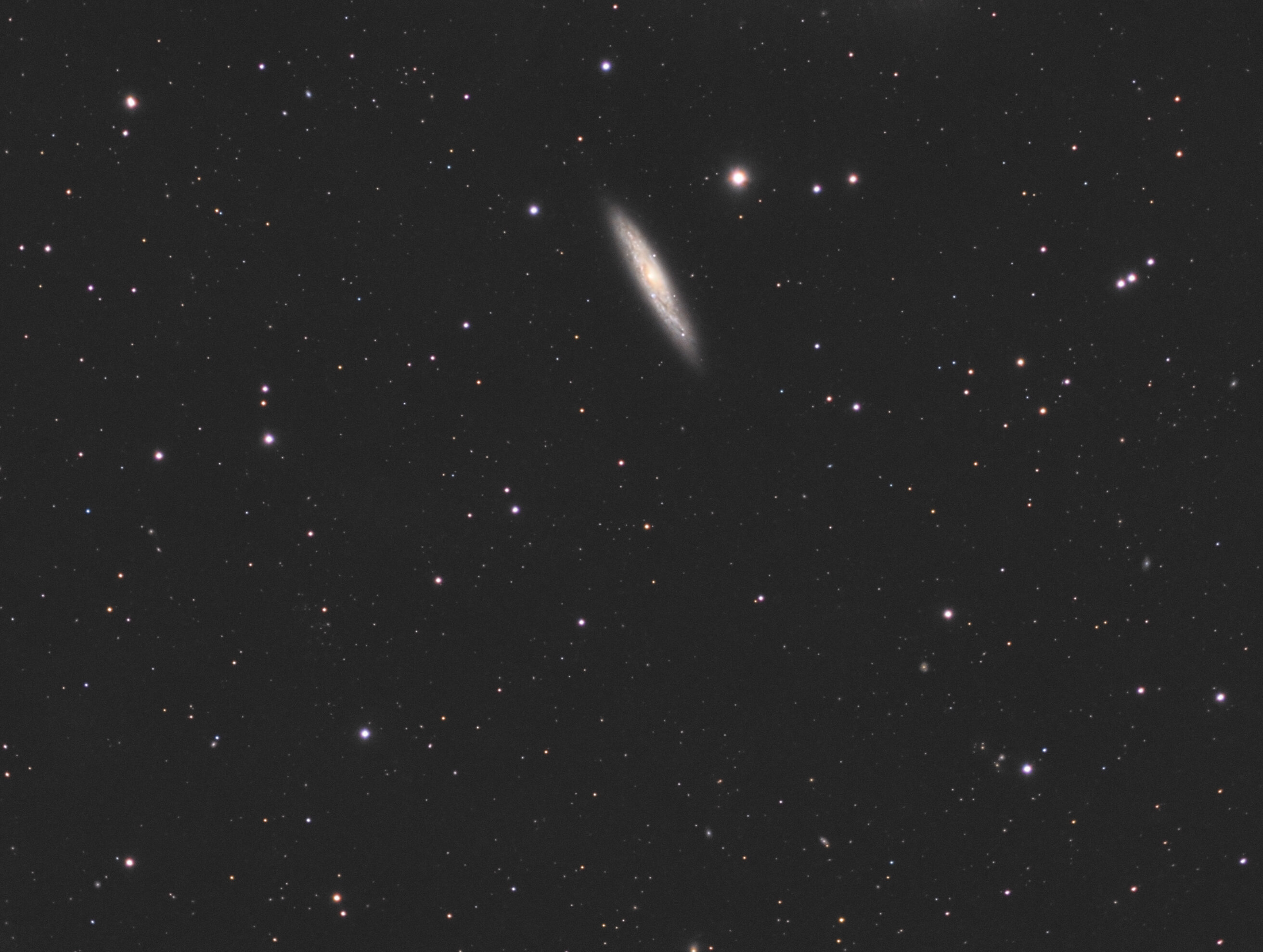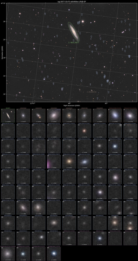 bonjour à tous, une image faite le 8 et 11 Mars dernier depuis ma Beauce de cette sympathique galaxie qui se trouve proche de Chi UMa , d'où le décentrage pour ne pas l'avoir dans le champ. C8 + réducteur 0.5 optec + filtres LRVB astronomik + atik460ex sur Ragdoll 17 Pro autoguidage en // avec Evoguide 50ED et zwo178mm avec glasspath x1.7 acquisitions NINA L : 25 x 300s en binning 1x1 RB : 8 x 180s avec en binning 2x2 V : 9 x 180s avec en binning 2x2 prétraitement imageviewCA, Siril traitements Siril, photoshop , Setiastro suite, SCUNET A la taille d'acquisition, recadrée Annotation script siril ( oui, ya du monde ) : a+ stéphane