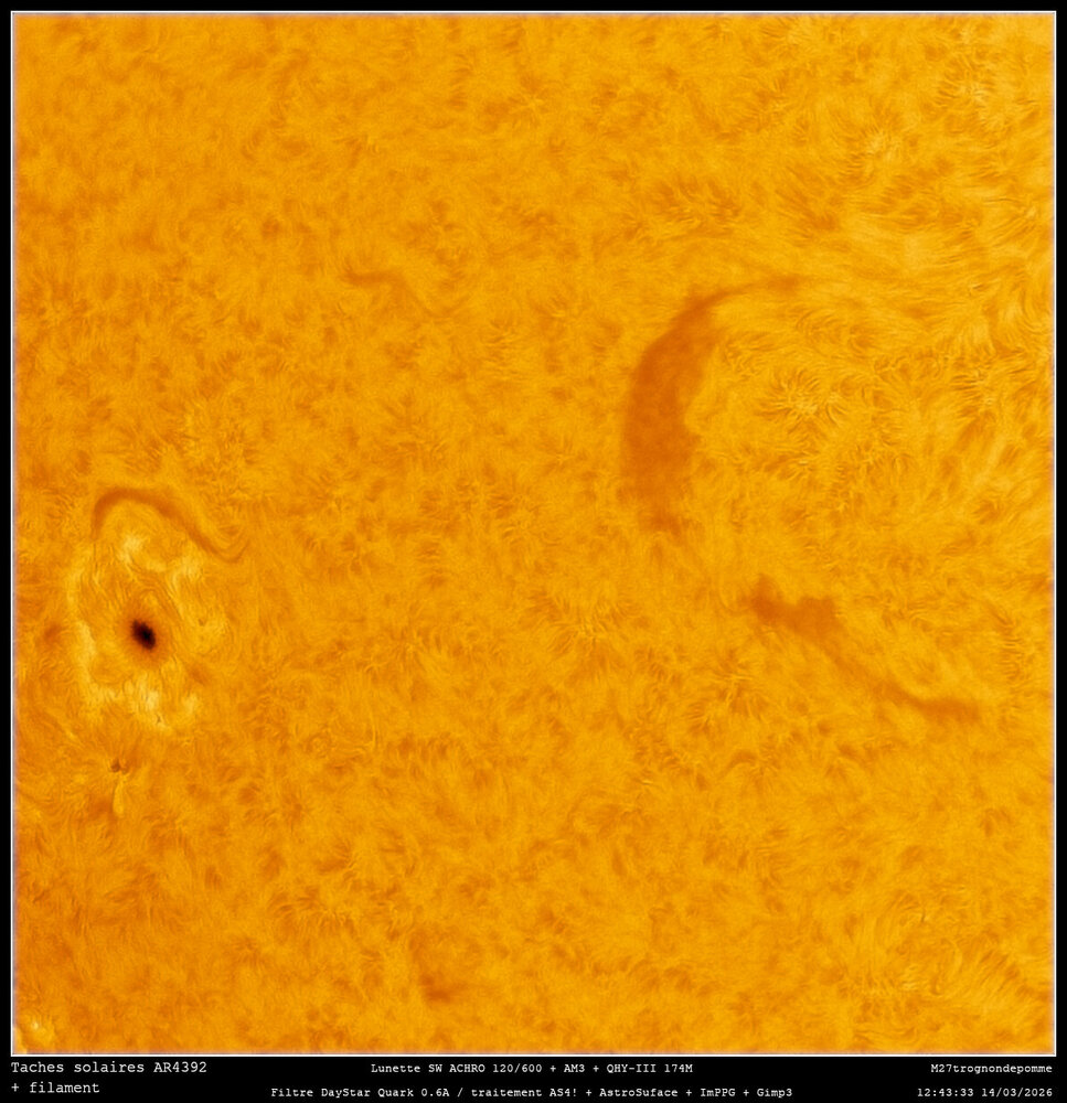 14. voici quelque panneaux du soleil du 13 mars setup TS130/910 DS LS40 rapport F/D 56 IMX 428 le seeing était assez moyen. Bon ciel a tous