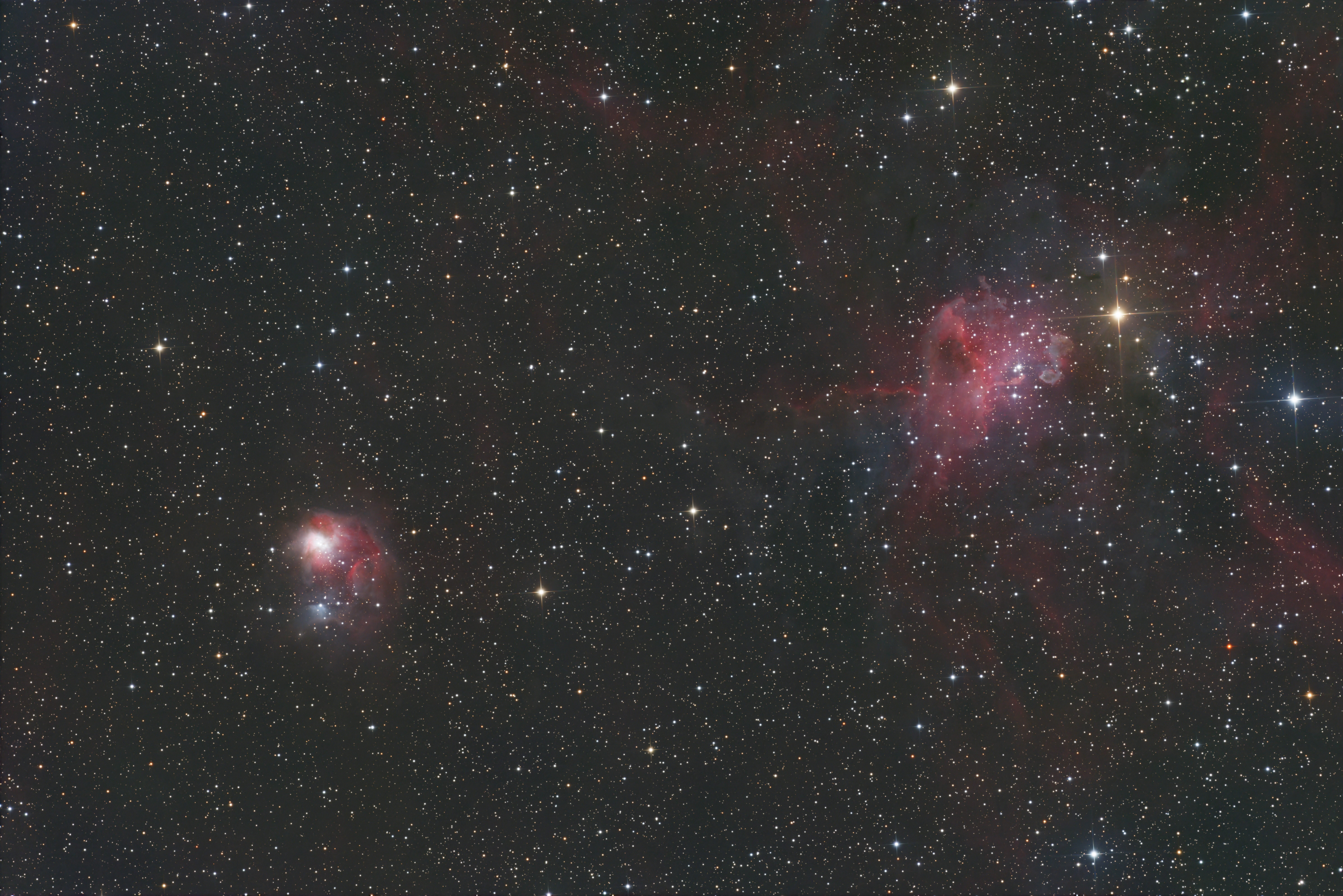 420mm de focale sur une 2600 ca donne un champ Beaucoup, beaucoup plus large que ca, ou c'est pas la bonne focale indiqué, ou tu as cropper tres fortement. Et si il y a 4 h au filtre, tu devrais avoir beaucoup plus de signal, avec du gaz partout autour, la c'est tout noir, c'est bizarre. J'aime bien comme ca, on dirait que tu as tout assombrit expres pour donner une image hyper contrastée. -