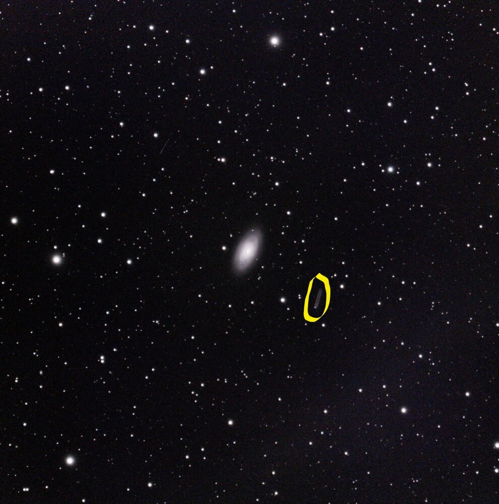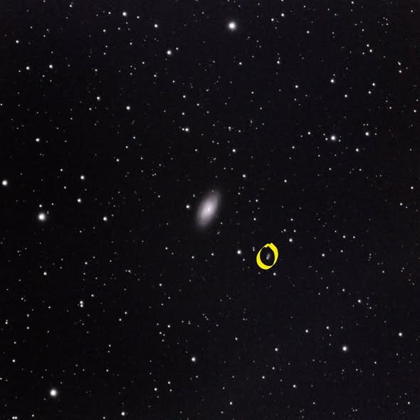 Bonjour, Hier soir en capturant M64 j'ai remarqué un point qui se déplace très lentement. Je l'ai entouré en jaune. Qu'est-ce que ça peut être ? Images brut en sortie du téléscope Ciel Bortle 3 Sans filtres