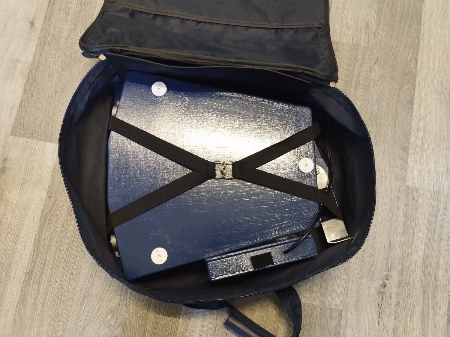 7. Merci pour vos commentaires 😊 J'imagine que ça a doit te rappeler quelque chose...😁 Et bien voilà : La fameuse raquette/boîtier de près : Fixée par velcro sur un support alu orientable au niveau du pied Sud. La télécommande est amovible, fixée par velcro également sur le boîtier. À l'intérieur rien d'extraordinaire : J'ai trouvé sur brocante un sac pour le transport. Il faudra que je trouve des mousses mais ça tient déjà bien : Ce soir dernier jour de beau temps par chez-moi, ça sent le grand soir de test ! 🙂