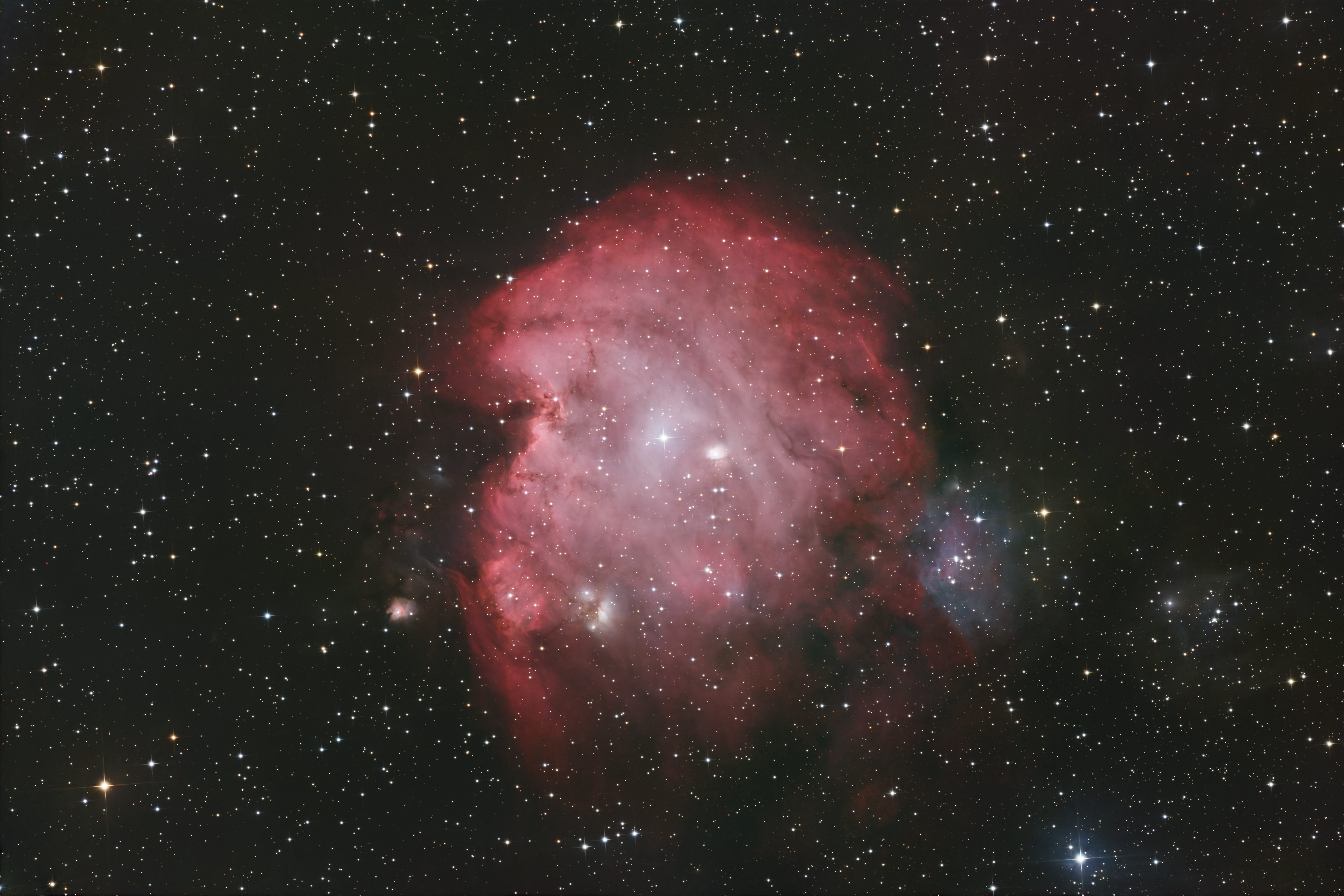 Salut, toute fraiche de cette nuit en première partie, la nébuleuse NGC 2174. J'ai pris 40 poses de 240Sec avec l'ASI6200MC sur un T 350 F4.6, donc RGB malgré" la lune. La nuit aura été très productive puisque j'ai pu faire: groupe de NGC1275 NGC2174 NGC2500 NGC2770 avant d'être arrêté sur le coup de 5H par le brouillard. Mais là, je suis au max de ma productivité avec 4 cibles en une nuit. Place aux images: La version starless crache bien je trouve: Je l'avais faite l'an dernier en bande étroite HOO, filtre Antlia dual band 3nM , qui enlève beaucoup de détails: Cela me conforte à faire du RGB tant que la lune le permet. a vos commentaires. a+ Serge