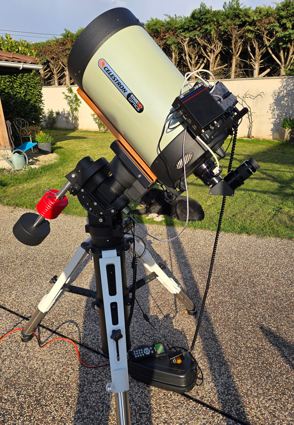 Bonjour à tous ! Je suis un petit nouveau ici, maintenant à quelques années de la retraite. J’ai décidé de me replonger dans l’astronomie, une passion que j’avais un peu mise de côté. Il y a 25 ans, j’avais acheté un ETX 125 que j’ai pas mal utilisé les premières années. À l’époque, je vivais en région parisienne, mais j’avais surtout la chance de pouvoir observer depuis la maison de famille, perdue au fin fond de la Creuse, avec un ciel incroyable. Et puis, avec les années, les enfants, la vie qui s’accélère, j’ai fini par laisser le télescope de côté. Après avoir déménagé en région lyonnaise, j’ai ressorti mon vieil ETX l’été dernier, à l’occasion d’un grand nettoyage du grenier. J’ai constaté que la monture ne fonctionnait plus, mais ma petite dernière de 13 ans m’a posé quelques questions sur l’astronomie. Du coup, je me suis dit que ce serait l’occasion d’aller découvrir le planétarium de Vaulx en Velin que je ne connaissais pas. Là-bas, j’ai entendu parler du club astro du coin, et voilà... le virus m’a repris ! Aujourd’hui, j’ai la chance d’avoir un jardin, un peu plus de temps le soir, et en parcourant les forums, j'ai été bluffé par le matériel et surtout les logiciels accessibles. Il faut dire que je viens de l’époque de l’argentique... Même en banlieue, on peut faire des trucs incroyables. J’ai tenté de réparer la monture de l’ETX sans succès, mais au fond je me suis dit que c’était le signe qu’il était temps de repartir sur de bonnes bases — et d’investir dans une monture sérieuse... je suis assez vieux pour savoir que c'est essentiel Cet hiver, j’ai écumé les annonces sur WA, AS etc. tout en participant aux ateliers pratiques du club pour me remettre à niveau, discuter, affiner mes choix. Confirmation : les télescopes, c’est vraiment mon truc. Et quelle surprise de voir que les Celestron sont désormais plus accessibles qu’autrefois ! Résultat : un C11 EdgeHD d'occasion bien équipé. De quoi refaire mes anciennes observations avec l’ETX, mais aussi me lancer dans l’astrophotographie, un domaine qui m’attire particulièrement (j'ai une certaine maîtrise du traitement du signal et de l’informatique associée). Au fil des occasions, j’ai complété le tout avec une bino Baader v1 et plusieurs oculaires, puis acheté une caméra ASI 585 MC en attendant peut-être une 2600 monochrome (j’ai déjà profité d'occasions pour roue à filtres et filtres !) J'ai validé le bazar en visuel, puis monté un mini PC (acheté avant la flambée des prix) que je pilote en Wi-Fi depuis la maison. Je commence doucement à me tourner vers l’astrophoto, mais je rencontre un gros souci avec le réducteur — j’ouvrirai un sujet à ce propos. Il me reste donc à peaufiner la configuration (la configuration de l'EAF dans NINA me fait souffrir, et surtout j'ai plutôt passé ma dernière nuit à observer - quel plaisir avec un tel appareil !) et continuer mes bricolages avant de produire mes premières images. Au plaisir de vous lire !