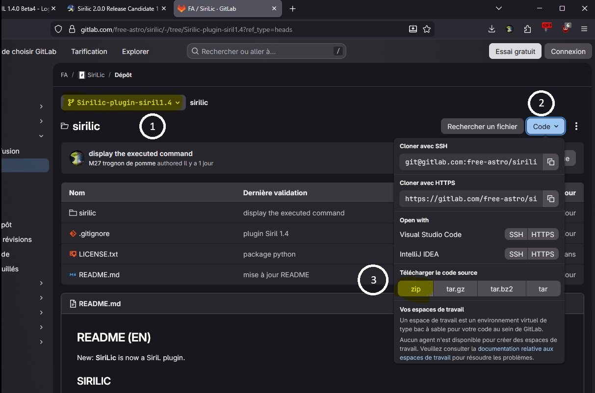 Salut, Je viens de faire quelques test sur MacOS Pas de problème de déploiement, 1er lancement avec chargement des paquets de dépendance OK L'interface s'affiche sans soucis graphiques. La génération de script et l'éditeur de script sont OK note: je precise cela car ce sont des éléments où nous avions rencontré des problèmes spécifiques à l'environnement MacOS par le passé. Les soucis: Lors de la creation d'un nouveau projet, lorsque je souhaite ajouter des images j'ai le message suivant (lors du click bouton Add images) 10:44:40: Exception in Tkinter callback 10:44:40: Traceback (most recent call last): 10:44:40: File "/Applications/Siril-1.4.app/Contents/Frameworks/Python.framework/Versions/3.12/lib/python3.12/tkinter/__init__.py", line 1968, in __call__ 10:44:40: return self.func(*args) 10:44:40: ^^^^^^^^^^^^^^^^ 10:44:40: File "/Users/stephane/Downloads/App/sirilic/sirilic.py", line 233, in cbAddImages 10:44:40: keystr = shdata.idb.KeyStr(object,layer,session) 10:44:40: ^^^^^^^^^^^^^^^^^^^^^^^^^^^^^^^^^^^^^^^ 10:44:40: File "/Users/stephane/Downloads/App/sirilic/lib/database.py", line 140, in KeyStr 10:44:40: return ObjectName + KwKeyStr + LayerName + KwKeyStr + SessionName 10:44:40: ~~~~~~~~~~~~~~~~~~~~~~~~~~~~~~~~~~~~~~~~~~~~~^~~~~~~~~~~~~ 10:44:40: TypeError: can only concatenate str (not "int") to str Si je charge un projet existant (avec des images déjà déclarées), j'ai un message similaire lorsque je clique sur le bouton "configure" 10:42:36: Exception in Tkinter callback 10:42:36: Traceback (most recent call last): 10:42:36: File "/Applications/Siril-1.4.app/Contents/Frameworks/Python.framework/Versions/3.12/lib/python3.12/tkinter/__init__.py", line 1968, in __call__ 10:42:36: return self.func(*args) 10:42:36: ^^^^^^^^^^^^^^^^ 10:42:36: File "/Users/stephane/Downloads/App/sirilic/sirilic.py", line 203, in cbConfigure 10:42:36: keystr = shdata.idb.KeyStr(object,layer,session) 10:42:36: ^^^^^^^^^^^^^^^^^^^^^^^^^^^^^^^^^^^^^^^ 10:42:36: File "/Users/stephane/Downloads/App/sirilic/lib/database.py", line 140, in KeyStr 10:42:36: return ObjectName + KwKeyStr + LayerName + KwKeyStr + SessionName 10:42:36: ~~~~~~~~~~~~~~~~~~~~~~~~~~~~~~~~~~~~~~~~~~~~~^~~~~~~~~~~~~ 10:42:36: TypeError: can only concatenate str (not "int") to str Cordialement -
