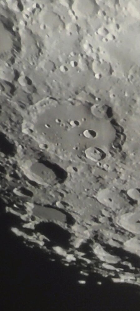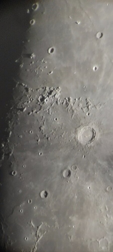 Ce soir, il y a un voile nuageux et du vent mais bon je ne pouvais pas ne pas sortir un télescope 😊 après tous ces jours de mauvais temps. Du coup j'ai fait au plus facile, le C8. Voici deux petites captures d'écran faites ce soir à travers le nirvana 7mm. Deux classiques Copernic et Clavius. -