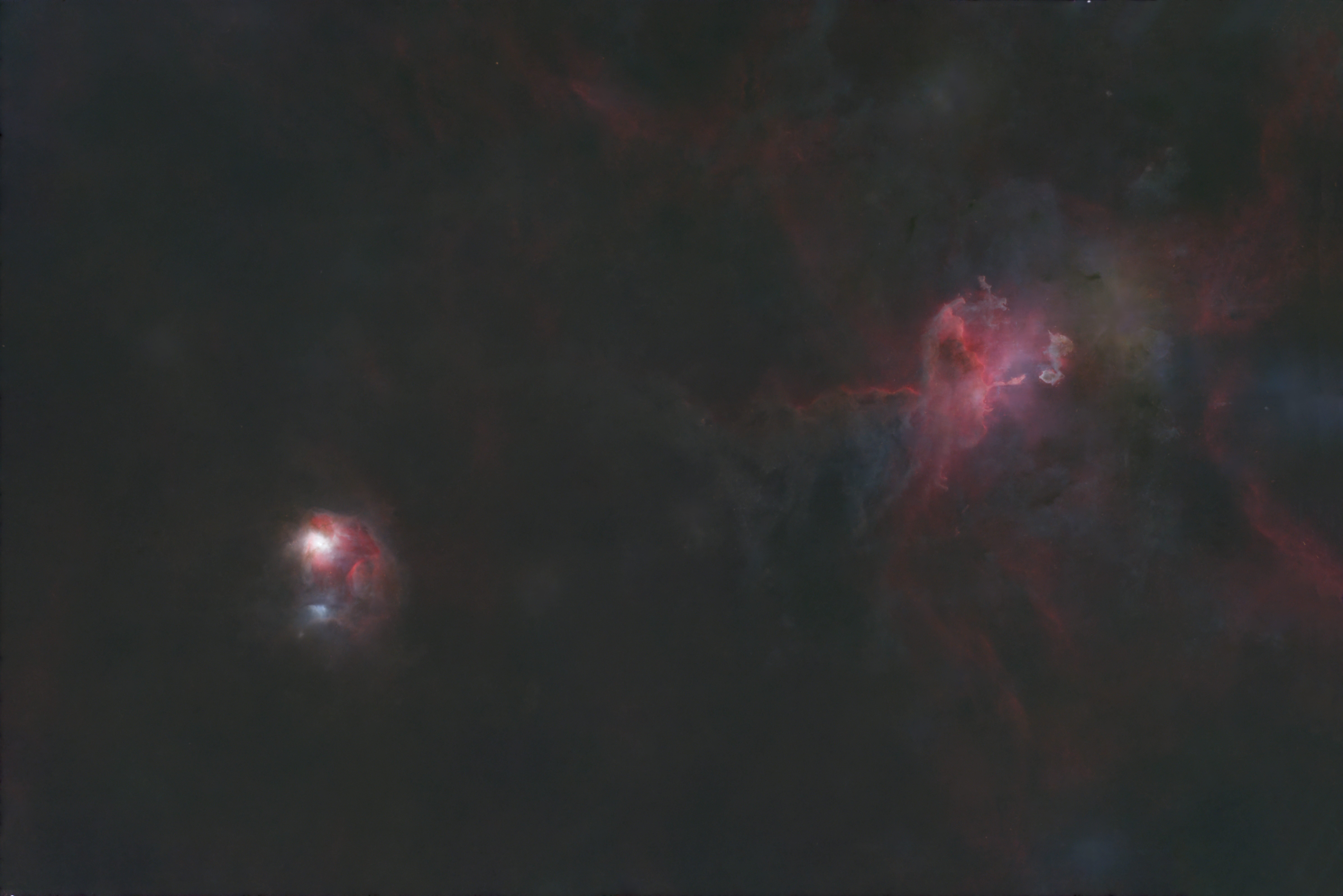 Premier test avec le focuser Pegasus sur la SQA55 : excellent ! Petite session sans prétention. J'ai volontairement réduit les étoiles pour faire la part belle aux nébulosités. 🗓️: 26/12/2025 🔭: Askar SQA55 (264 mm) 📷: Player One Poseidon C-Pro ❄️-10° ⚙️: StarAdventurer GTI 🚥: Player One Anti-Halo PRO dual-band 🎯: ZWO ASI120mini + lunette 30 f/4 💻: NINA + GSS + PHD2 ⏱️: 109 x 180s (5h27min) 🎚️: Gain 125 🖥️: Siril + PixInsight + Photoshop 🌍: Haute-Vienne 🌔: 38% 🌌: Bortle 4 -